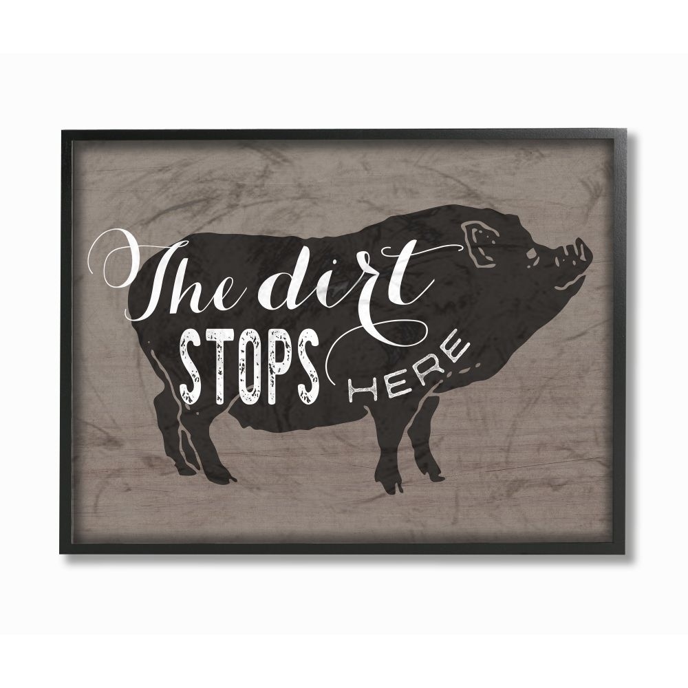 The Stupell Home Decor the Dirt Stops Here White Script on Black and Brown Pig Black Framed Art, 11x14, Proudly Made in USA