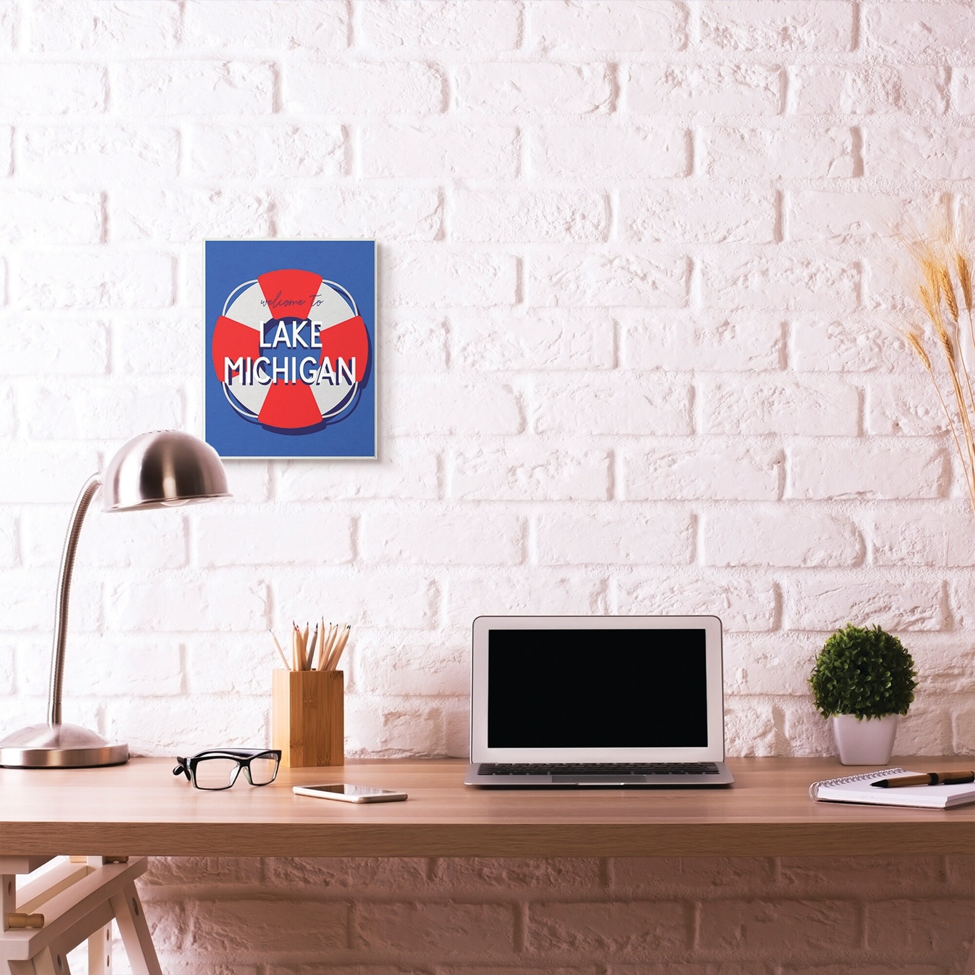 Stupell Industries Lake Michigan Beach Coast Ocean Blue Red Word Design,10x15, Proudly Made in USA