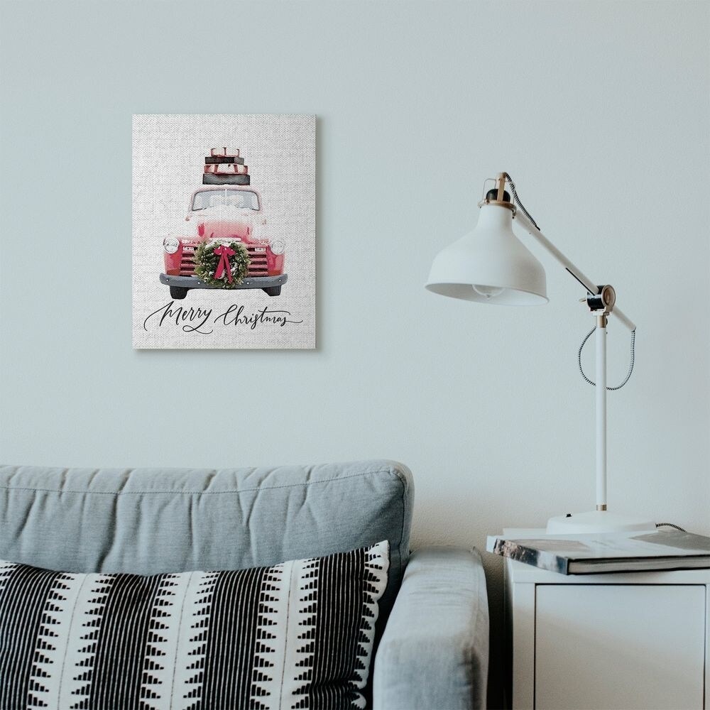 Stupell Industries Merry Christmas Red Truck Holiday Design Canvas Wall Art, Proudly Made in USA