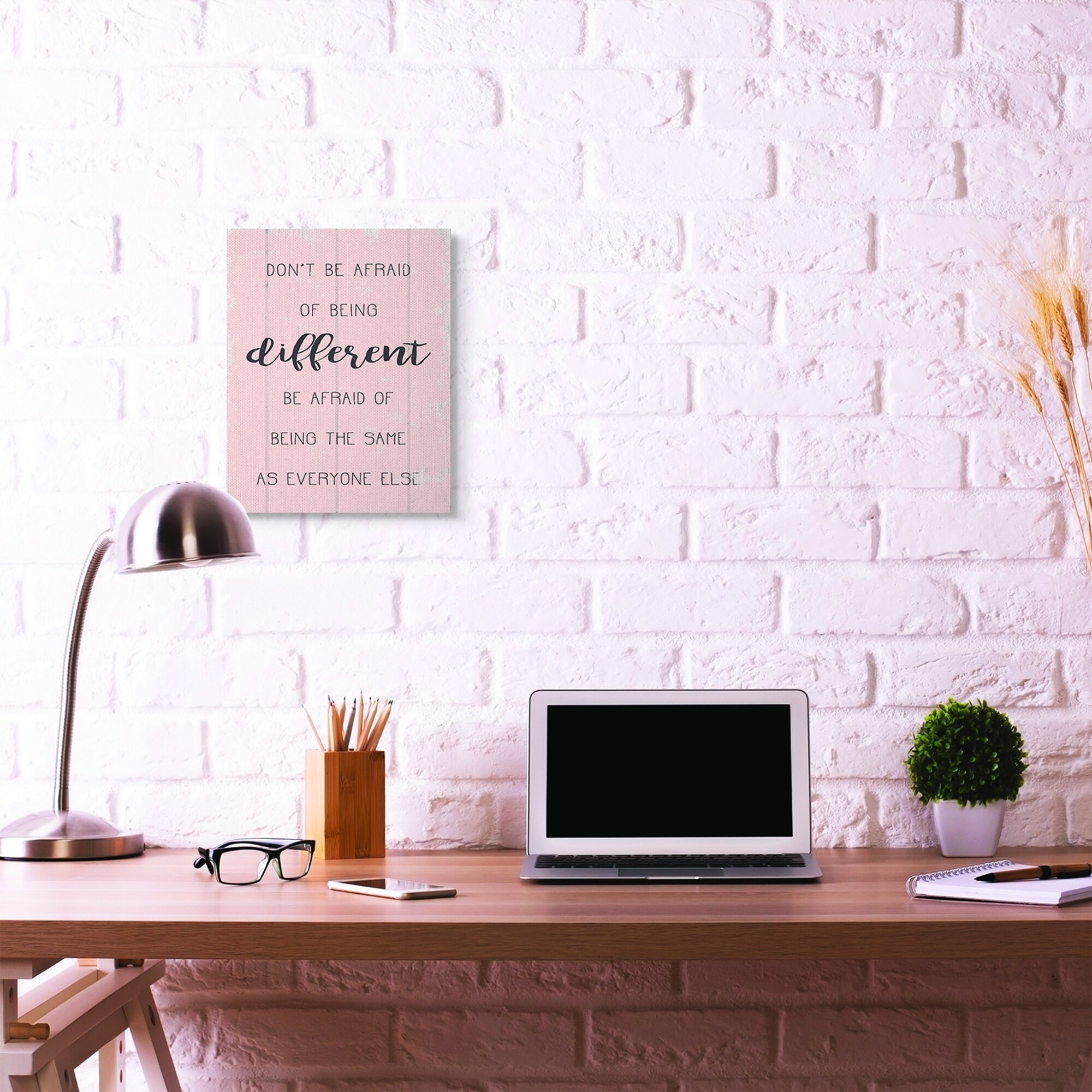 Stupell Industries Don't Be Afraid Pink Wood Texture Inspirational Word Design Canvas Wall Art, Proudly Made in USA