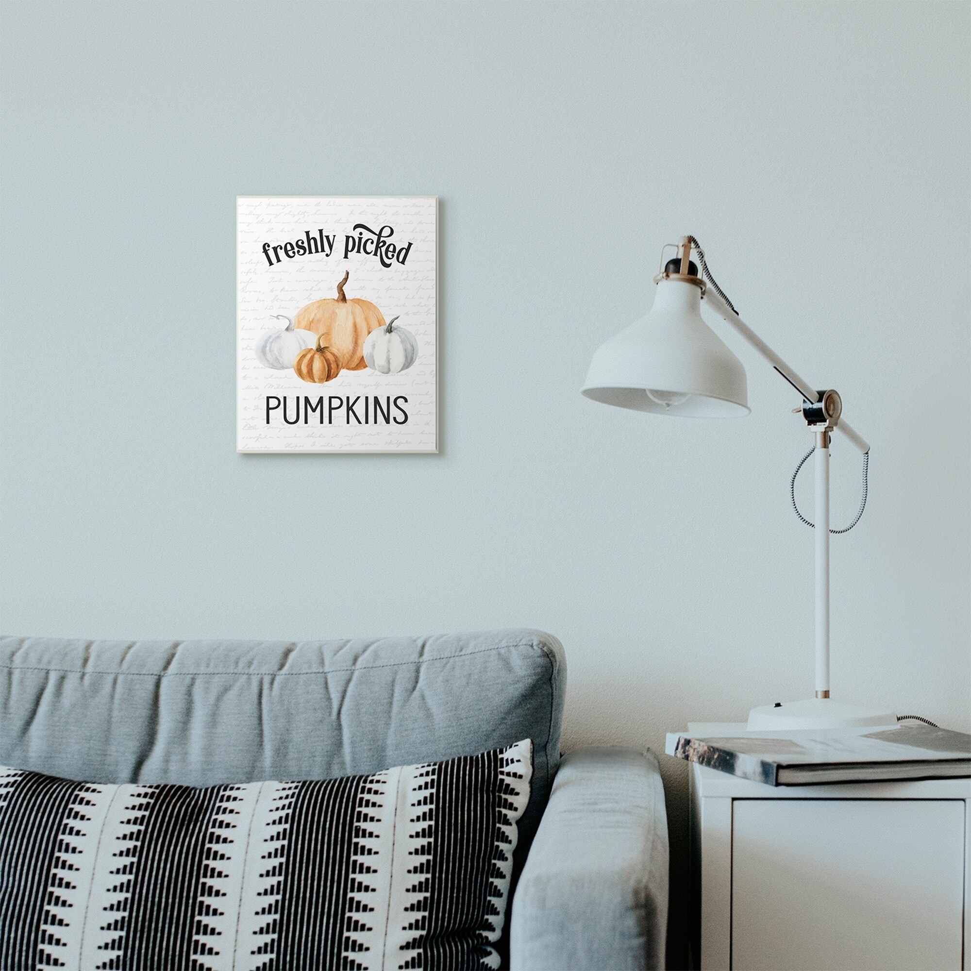 Stupell Industries Freshly Picked Pumpkins Autumn Fall Seasonal Design Wood Wall Art, Proudly Made in USA