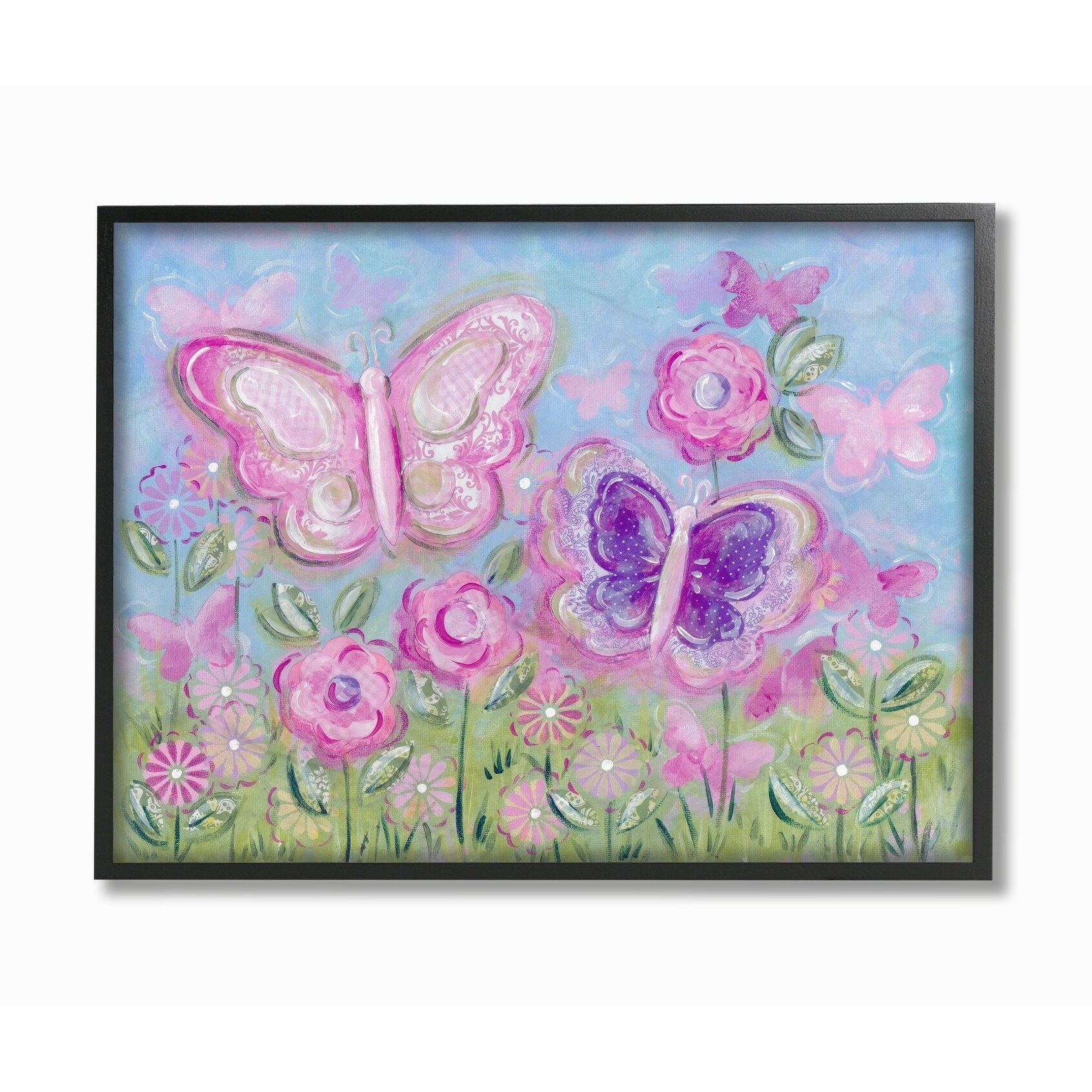 Stupell Pastel Butterflies in a Garden Black Framed, 24 x 30, Proudly Made in USA - 24 x 30