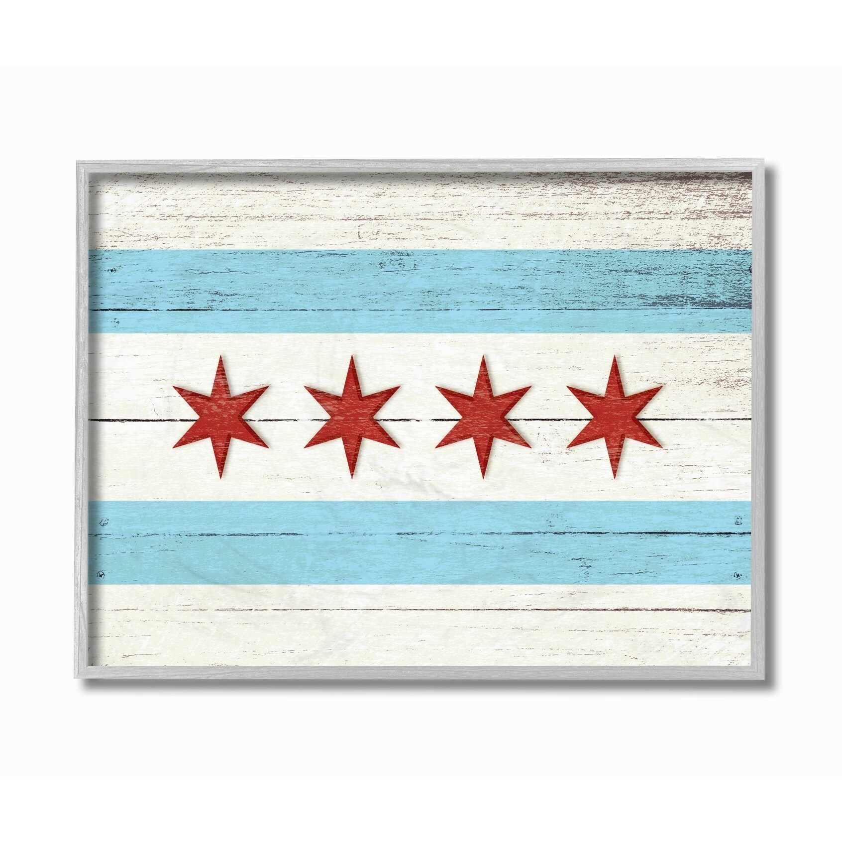 Stupell Industries Chicago Flag Distressed Wood Look Grey Framed, 11 x 14, Proudly Made in USA - 11 x 14