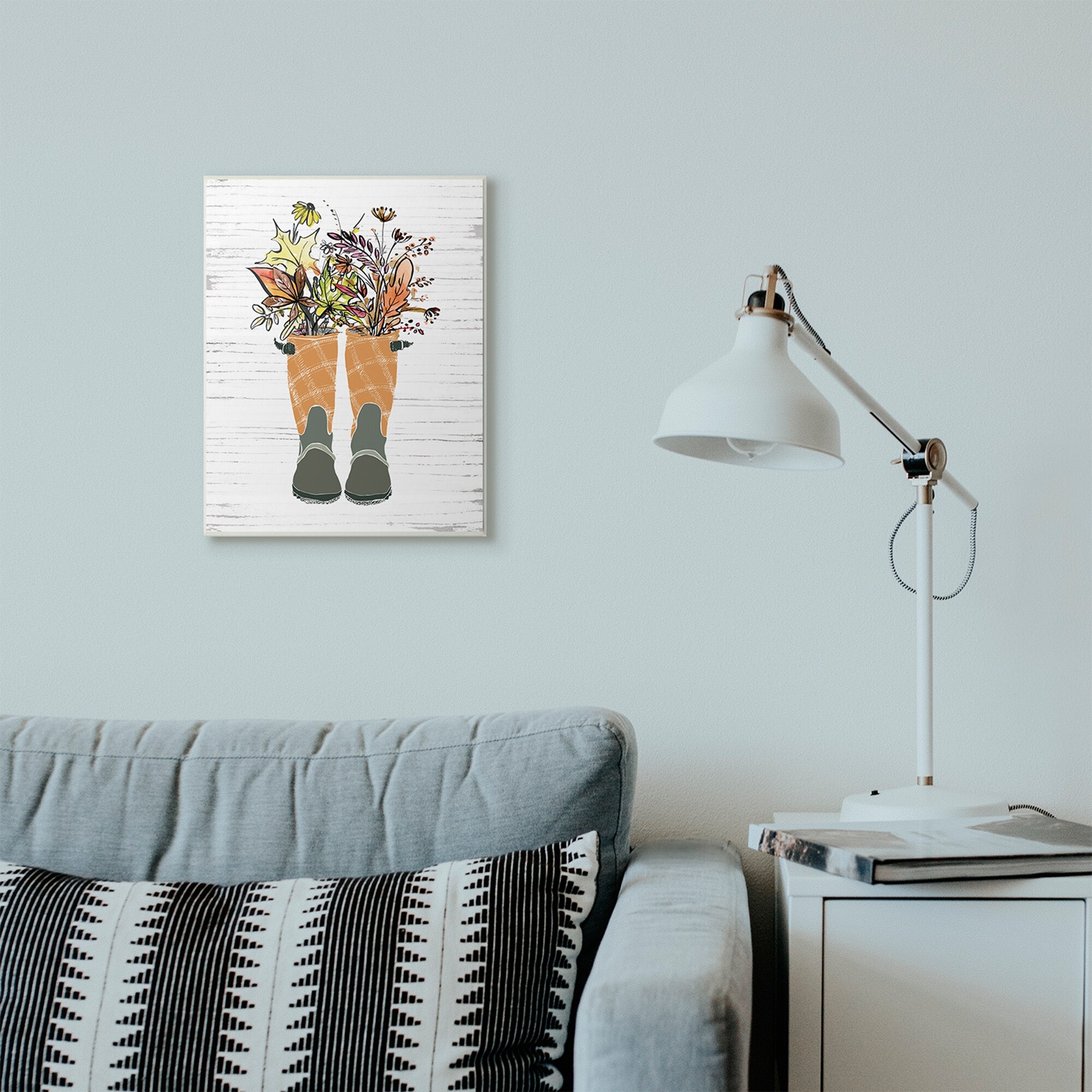 Stupell Industries Fall Foliage Boots Autumn Seasonal Design Wood Wall Art, Proudly Made in USA