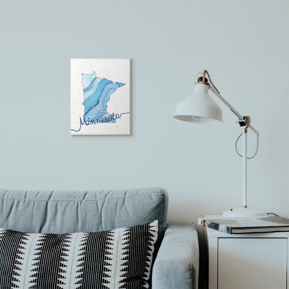 Stupell Industries Minnesota Agate Blue US State Design Wood Wall Art, Proudly Made in USA