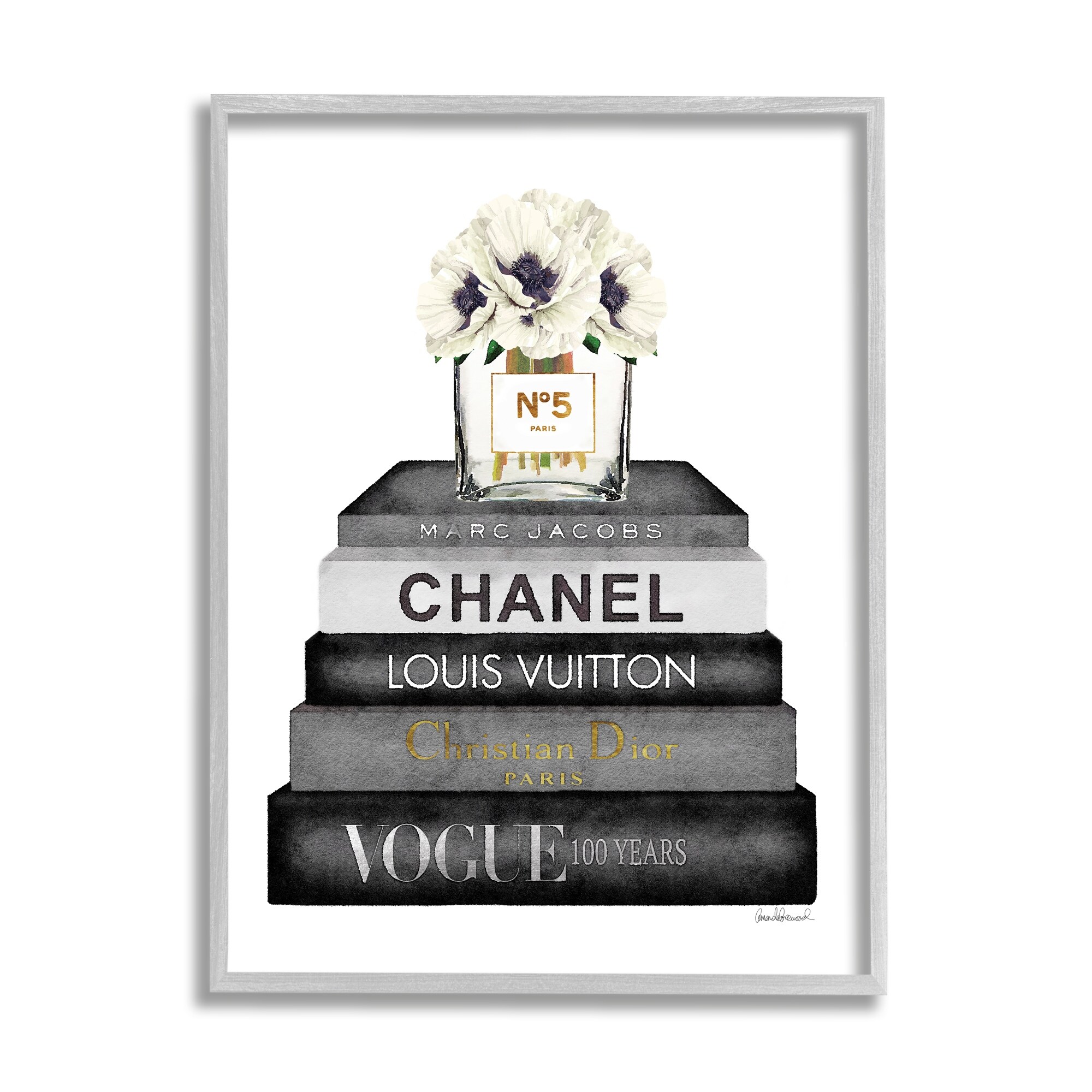 Stupell Industries Fashion Designer Flower Bookstack Black And White Watercolor Framed Wall Art, Proudly Made in USA