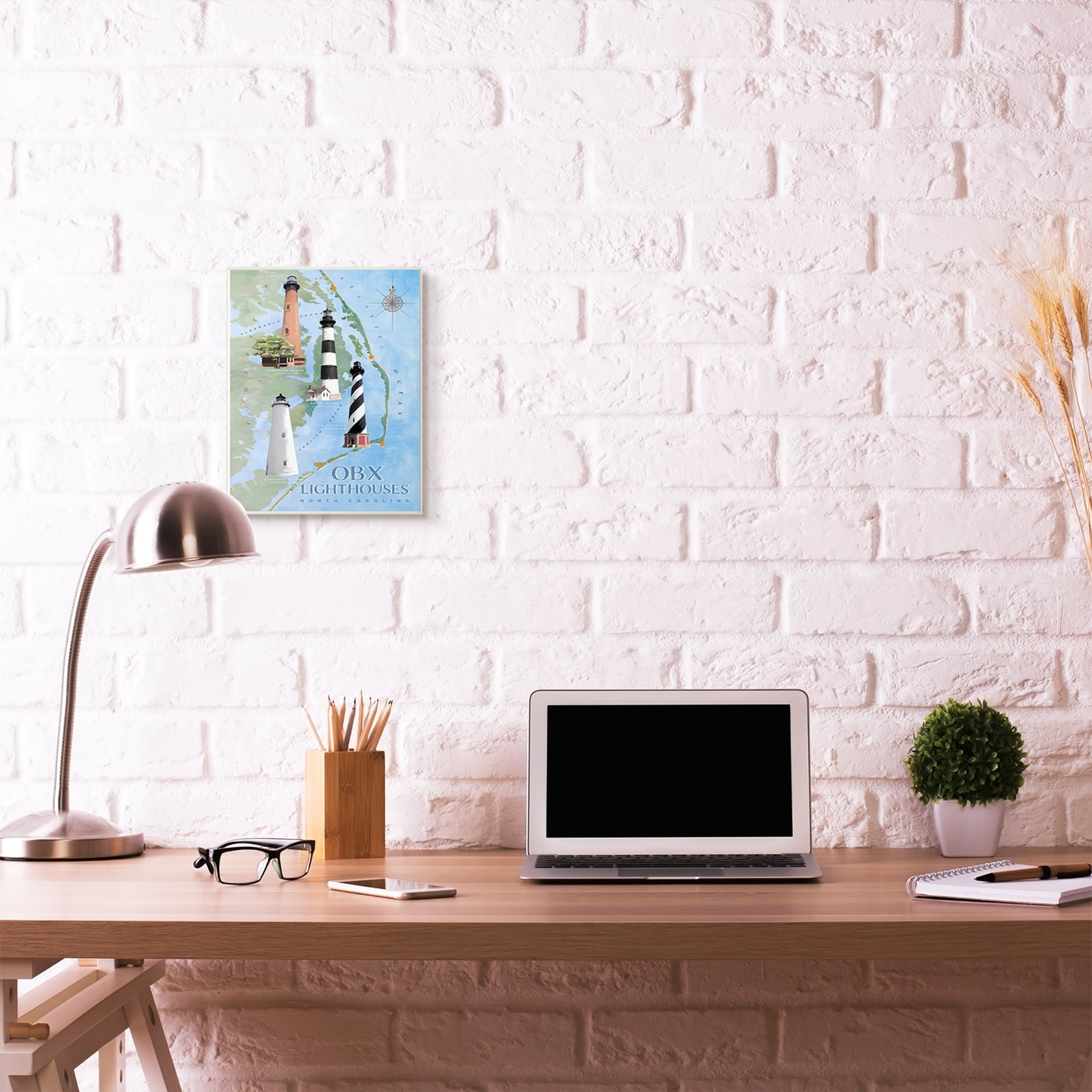 Stupell Industries North Carolina Lighthouses Beach Coast Ocean Map Painting,10x15, Proudly Made in USA