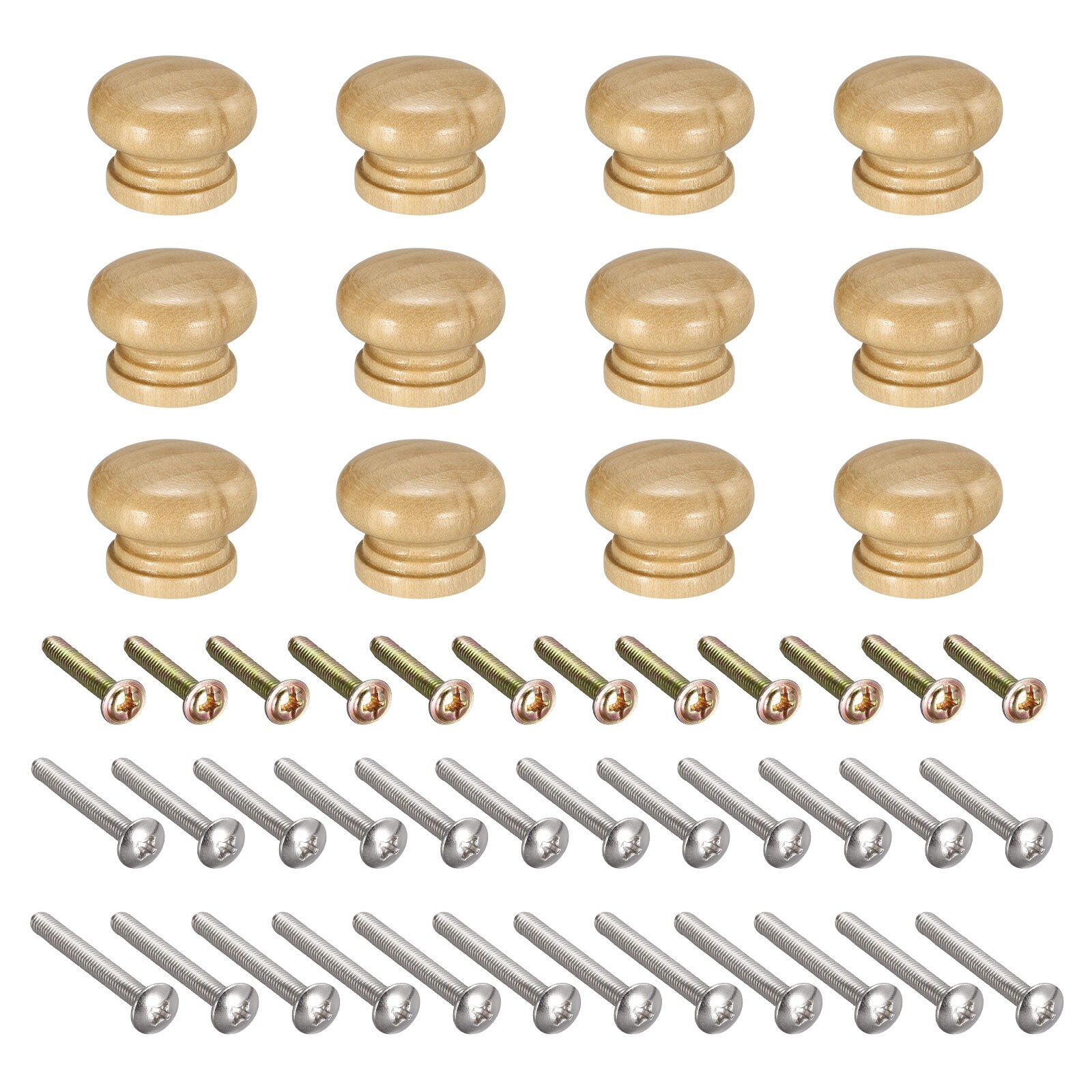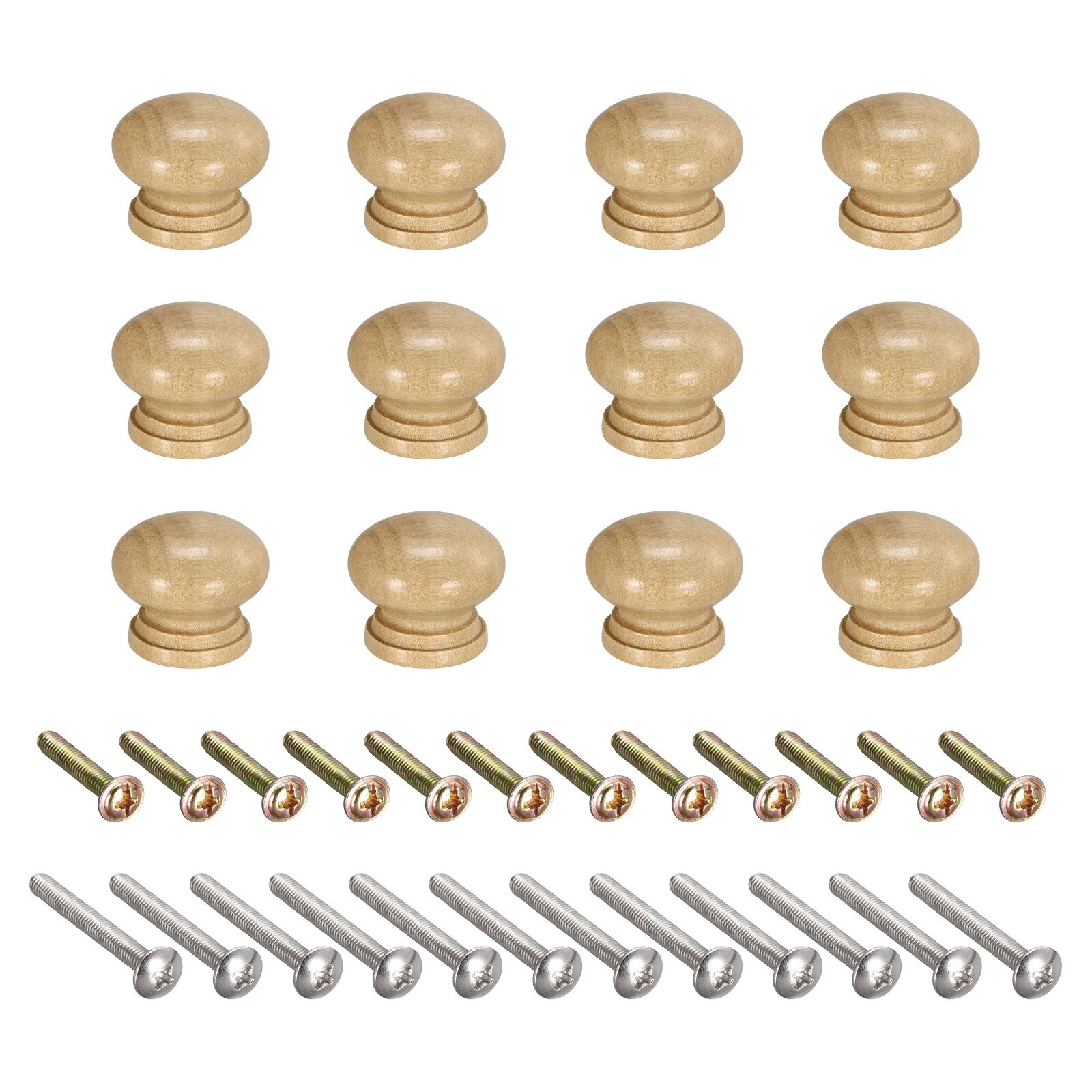 Round Wood Knobs 12pcs 28mmx21mm Pull Handles for Furniture, with Screws