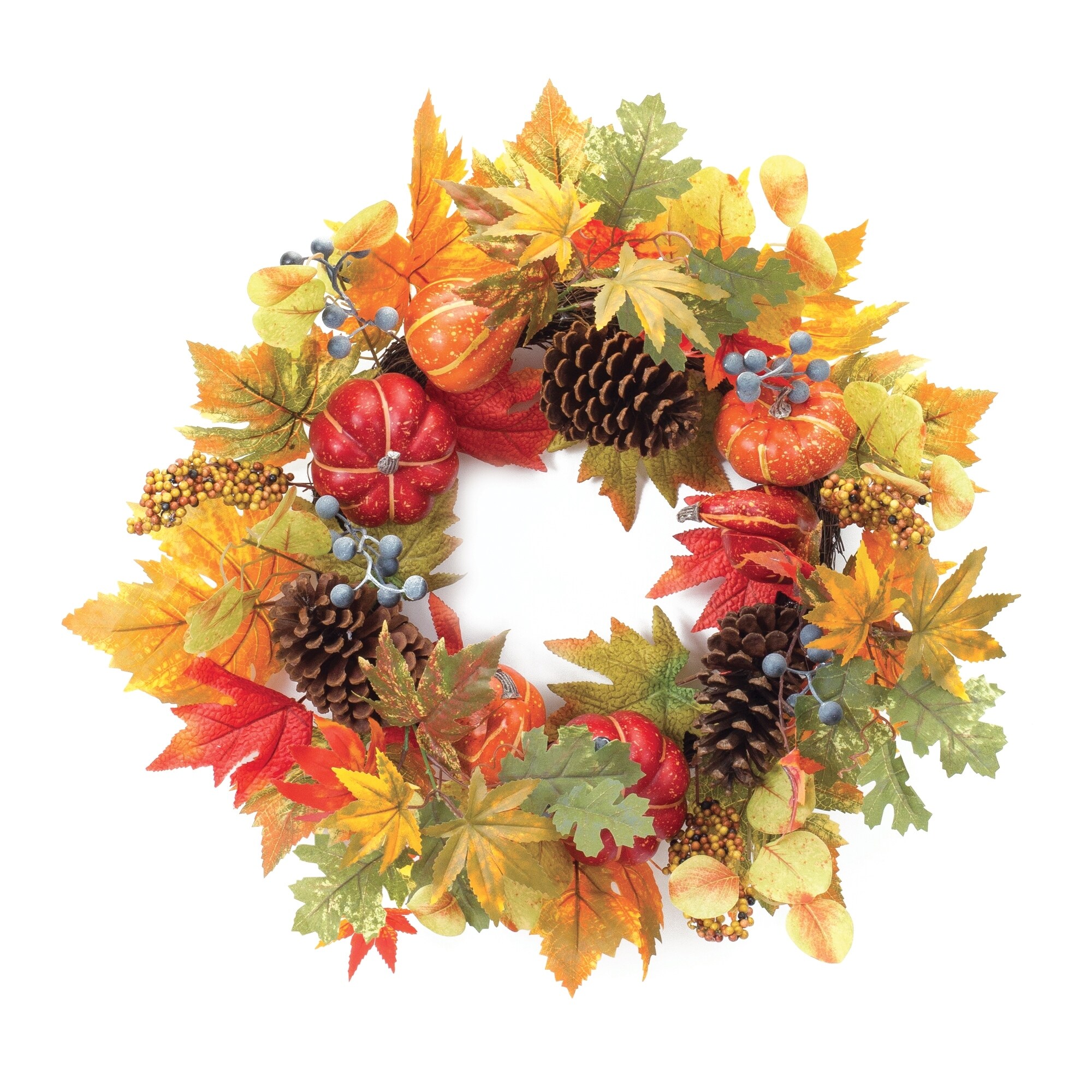 Fall Leaf Pumpkin and Gourd Wreath 24"D