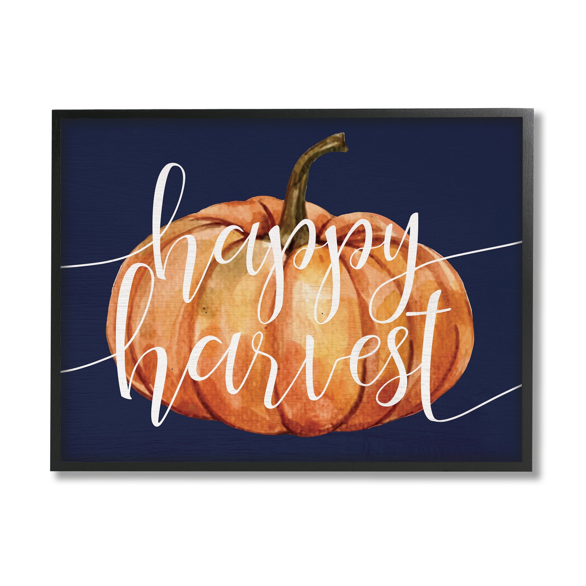 Stupell Industries Happy Harvest Phrase Orange Pumpkin over Blue Framed Wall Art
