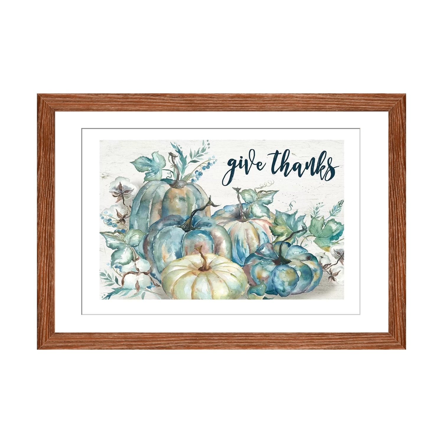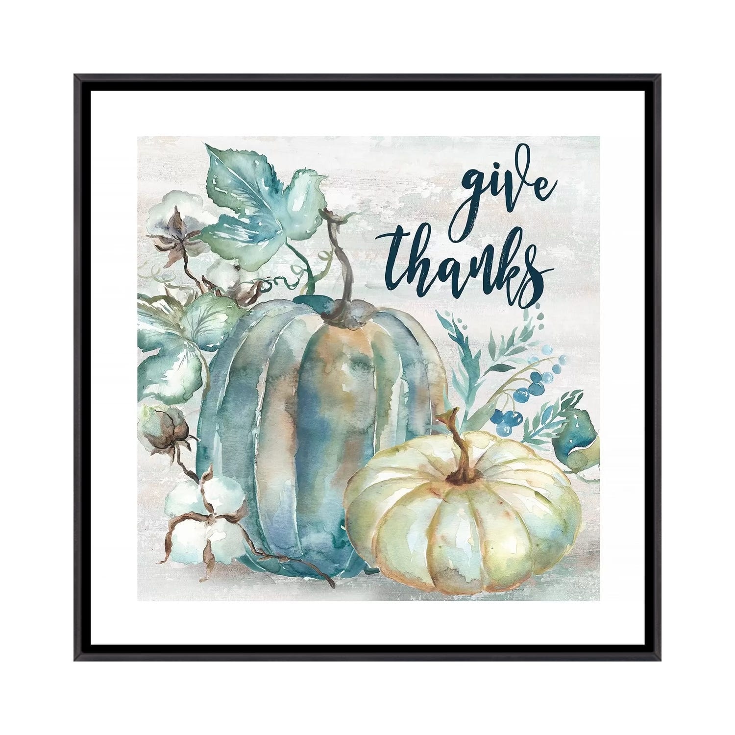 iCanvas "Blue Watercolor Harvest Pumpkin Give Thanks II" by Tre Sorelle Studios Framed