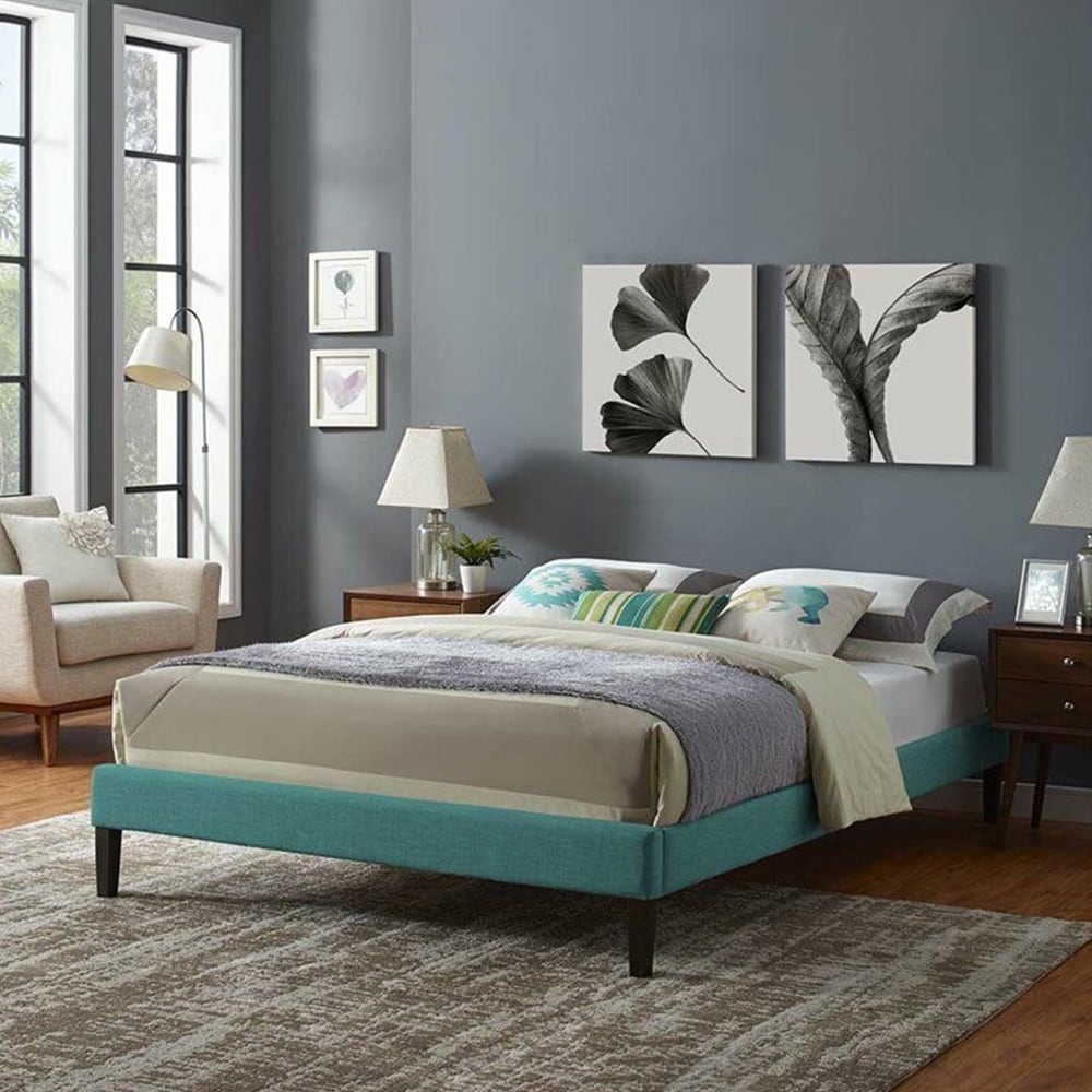 Queen Size Upholstered Platform Bed Teal
