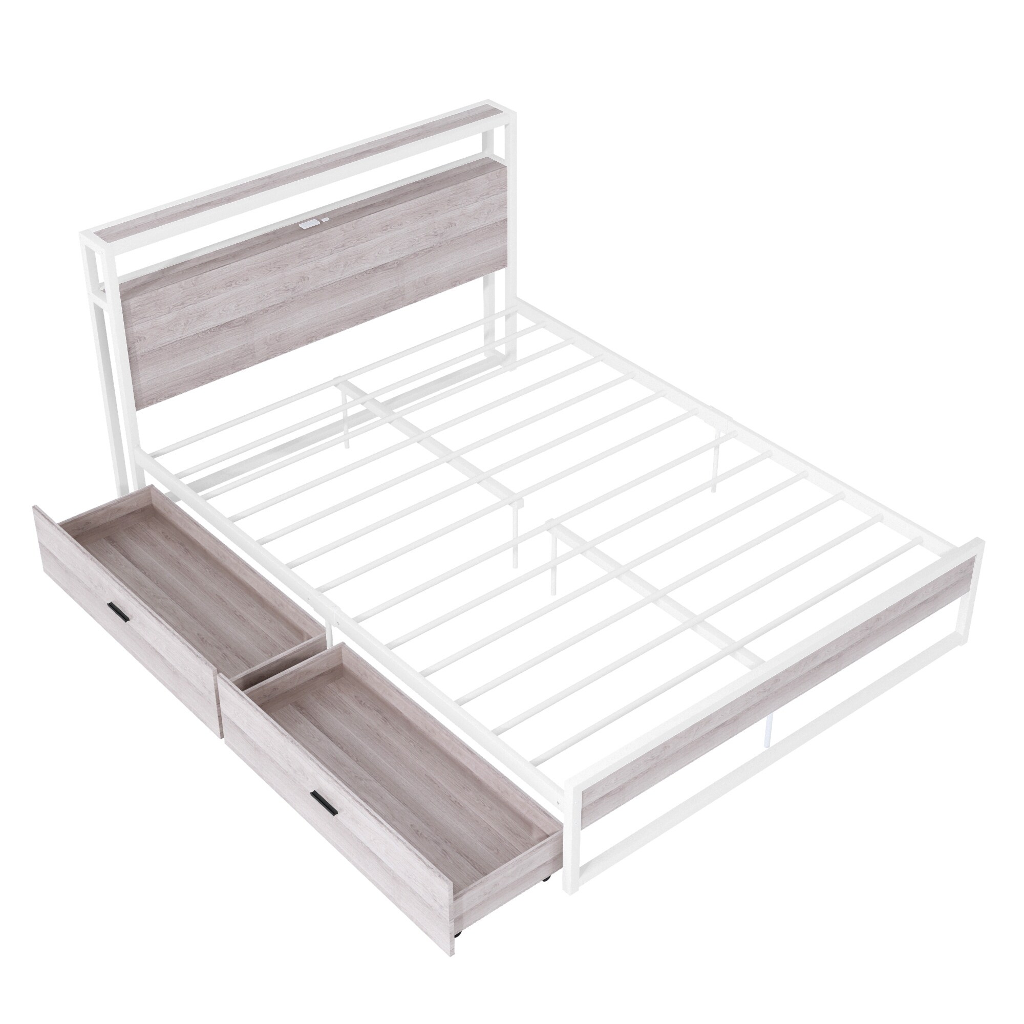 Queen Size Metal Platform Bed Frame with Two Drawers,Sockets and USB Ports