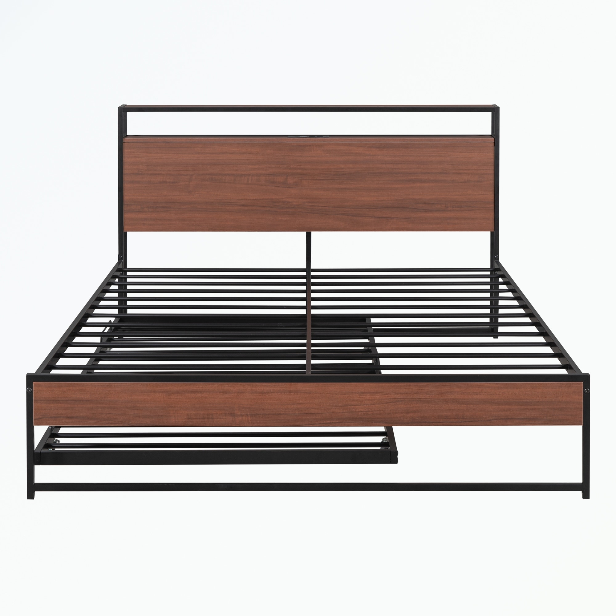 Queen Size Metal Platform Bed Frame with Trundle & USB Ports