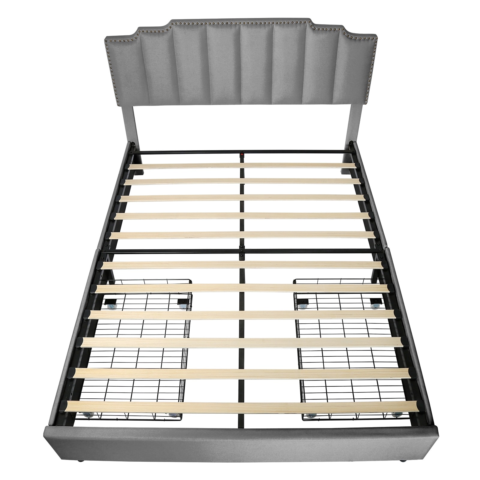 Queen Size Metal Platform Bed Frame with Trundle