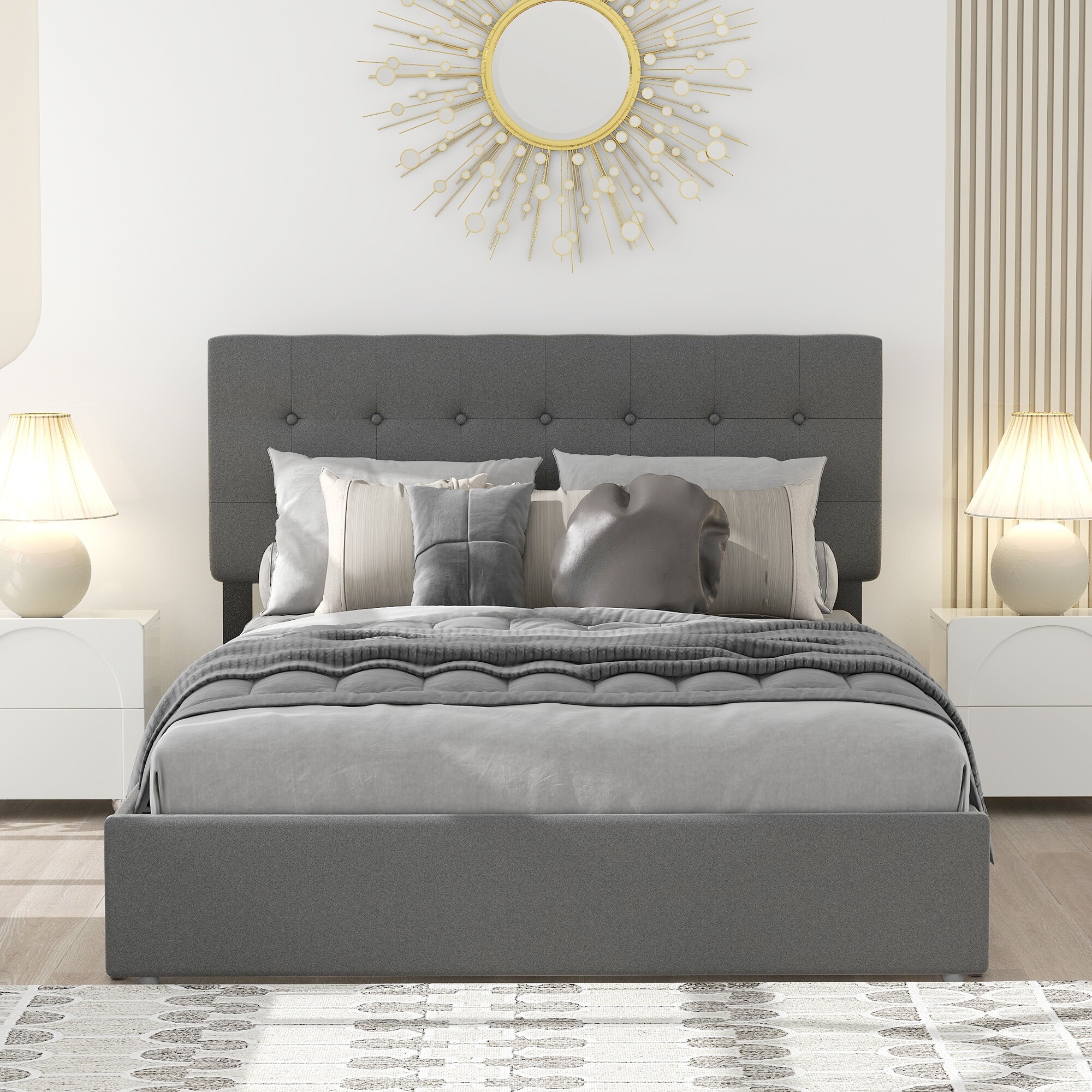 Queen Size Upholstered Platform Bed with Underneath Storage & Tufted Headboard