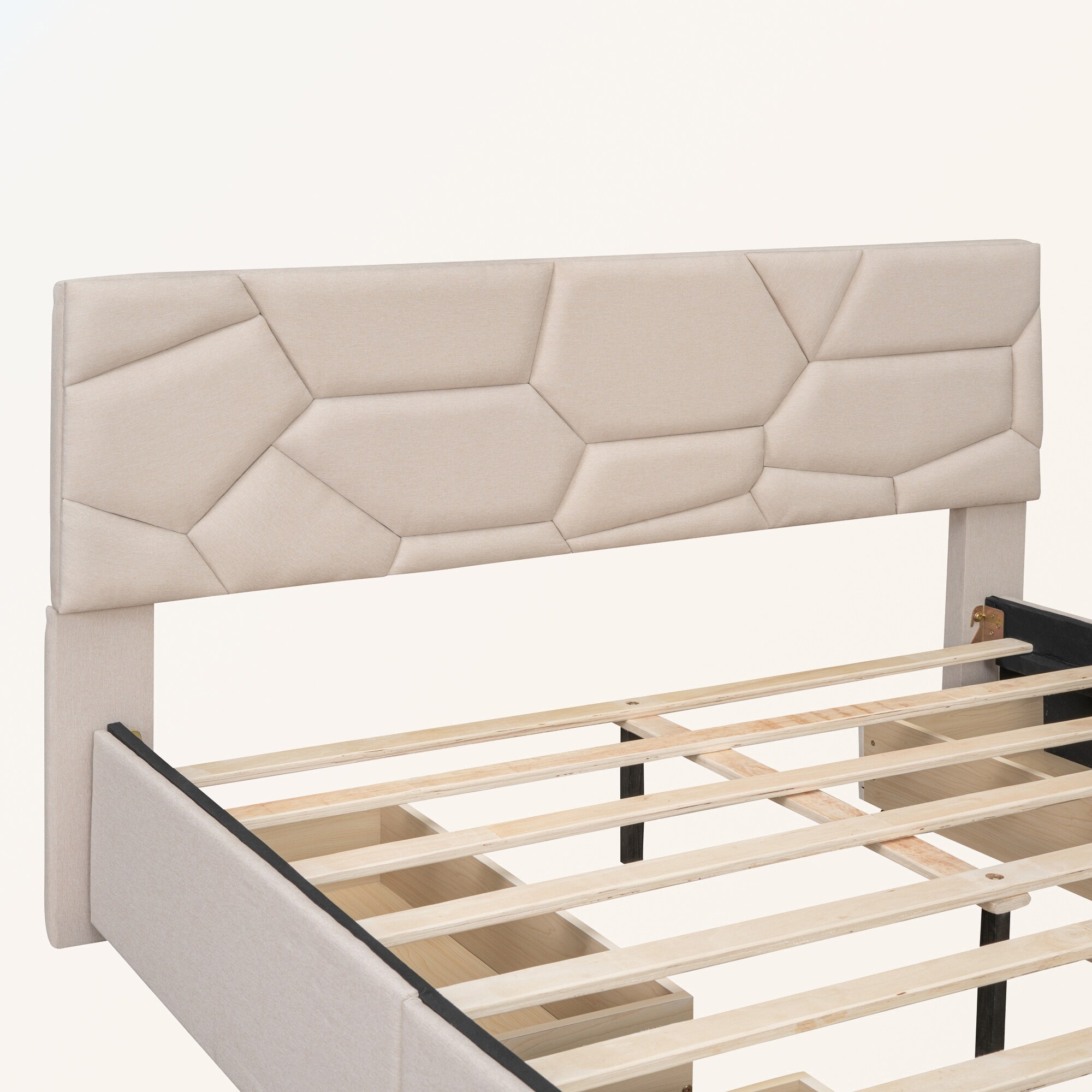 Queen Size Upholstered Platform Bed with Classic Headboard and 4 Drawers, Linen Fabric
