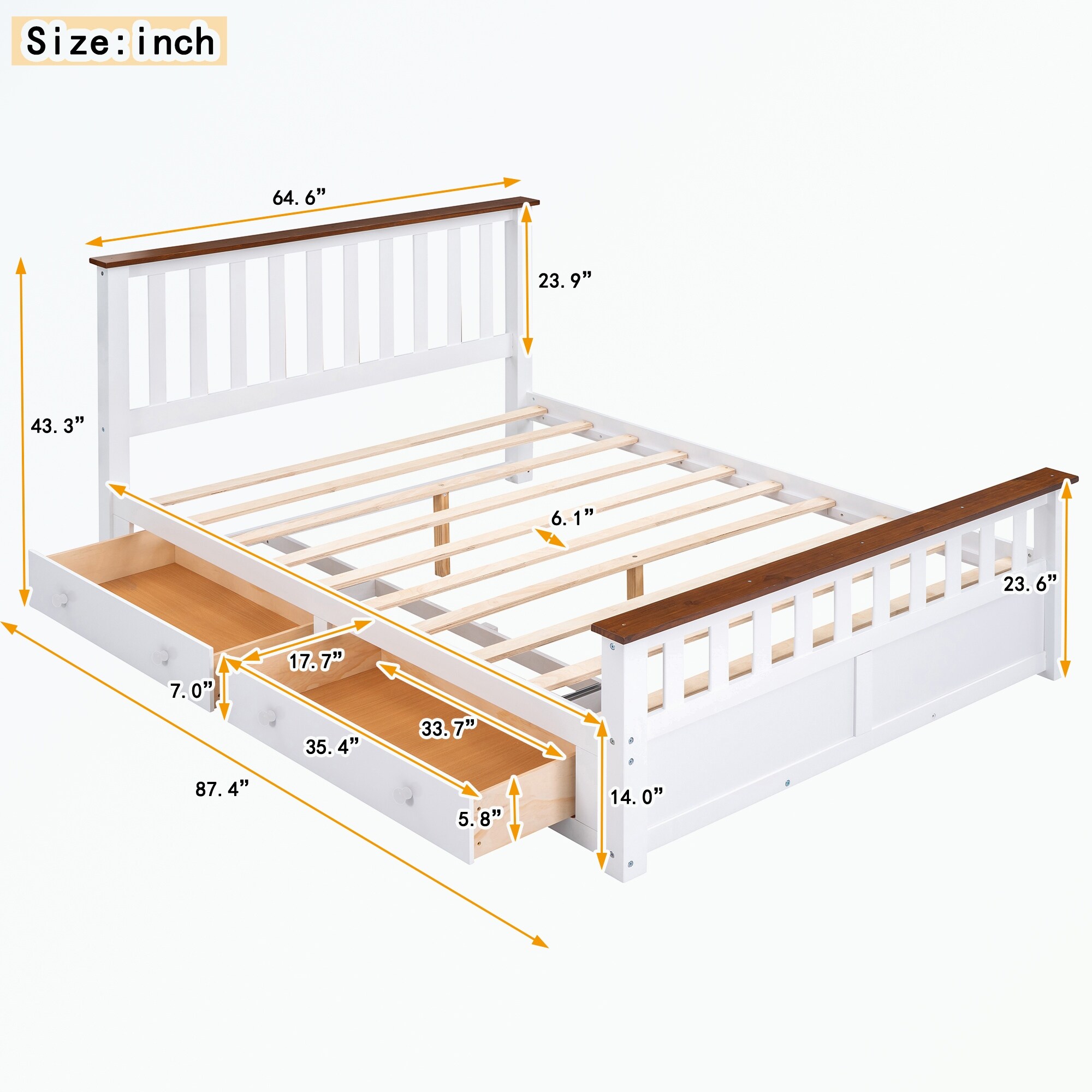 Queen Size Wood Platform Bed with Two Drawers and Wooden Slat Support