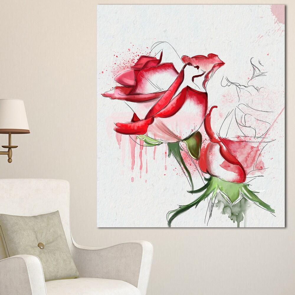 Designart "Fantastic Red Roses Watercolor" Floral Canvas Artwork Print