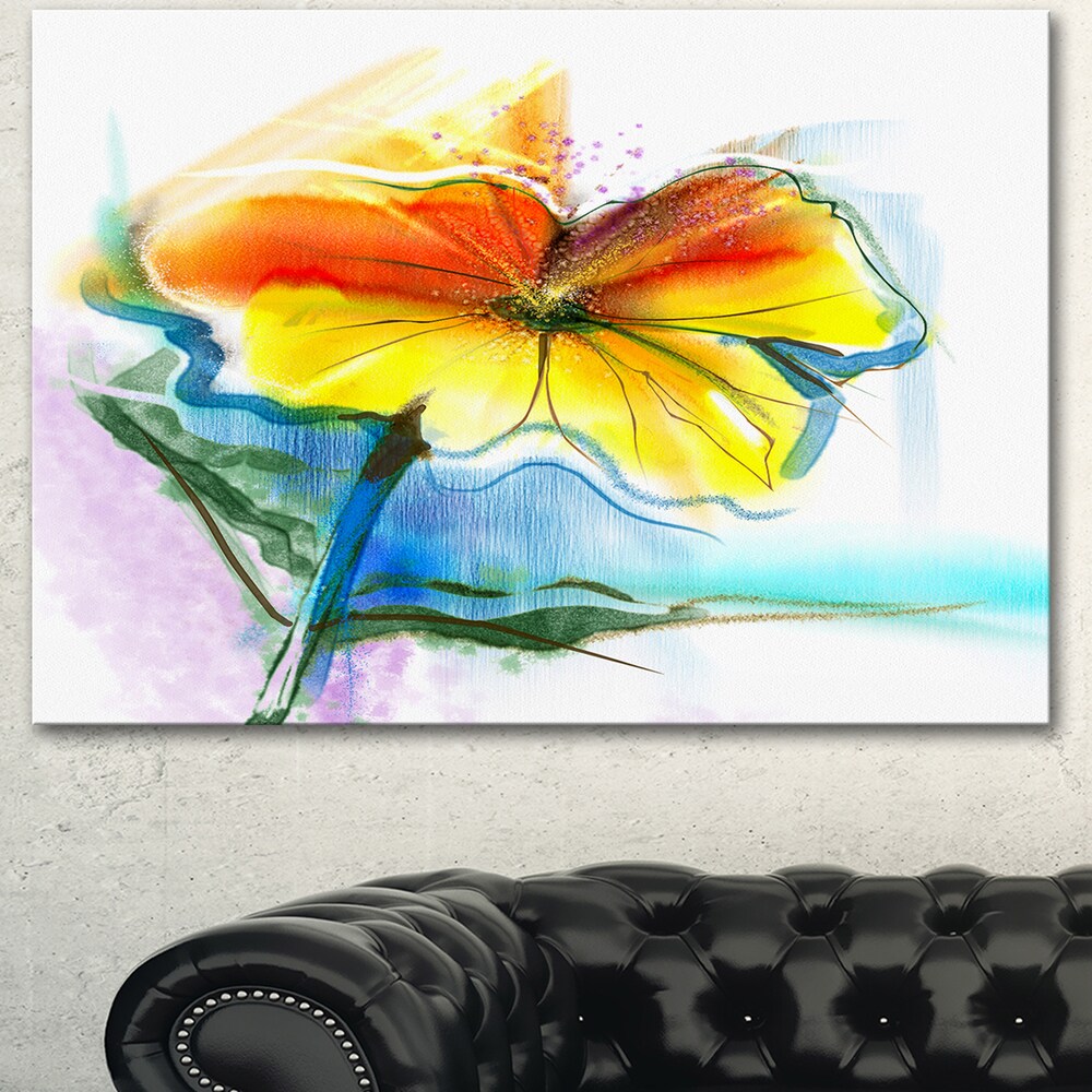 Designart "Yellow Pink Red Daisies" Modern Floral Wall Art Canvas