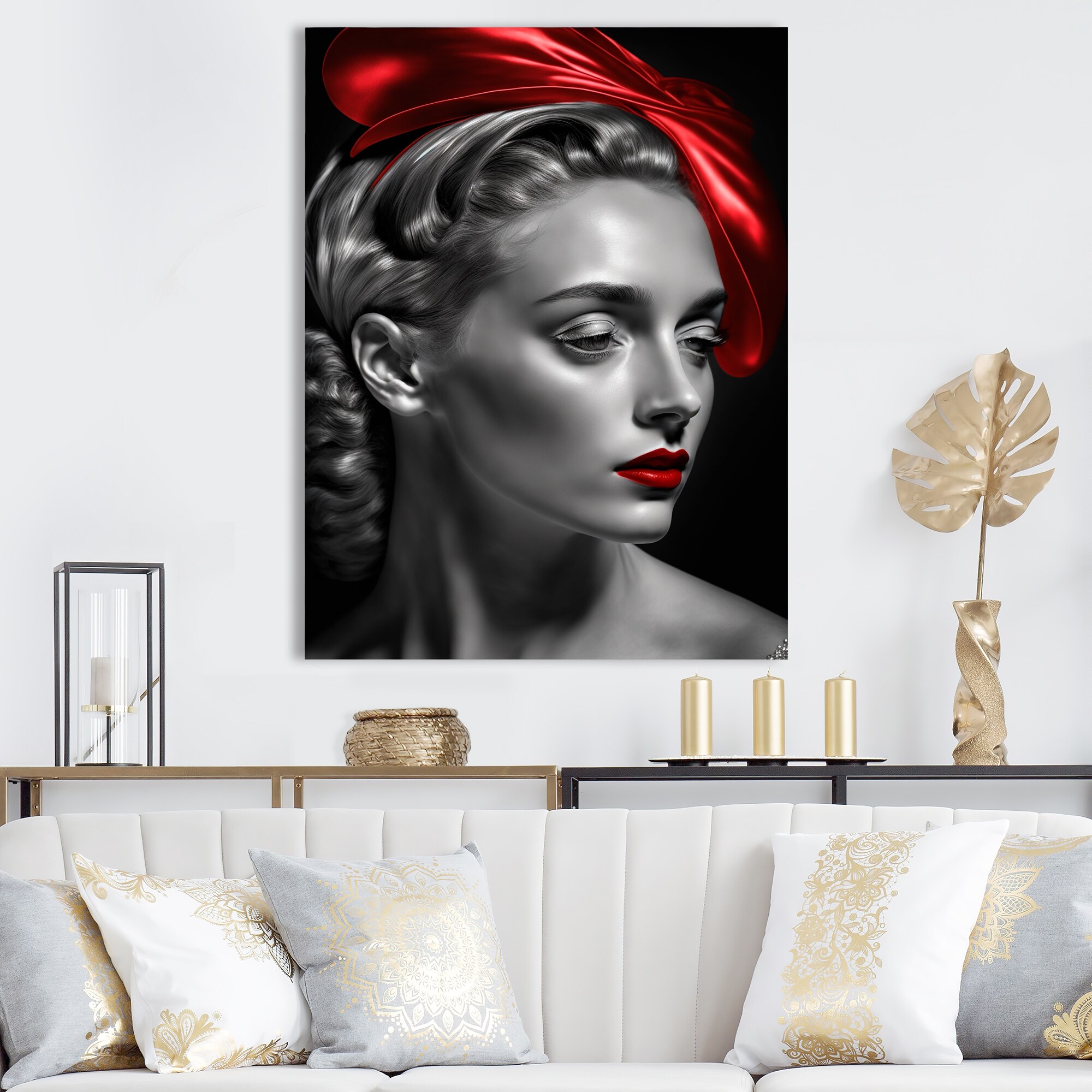 Designart "Vintage Sensuality in Red And Black III" Woman Sensual Metal Wall Art