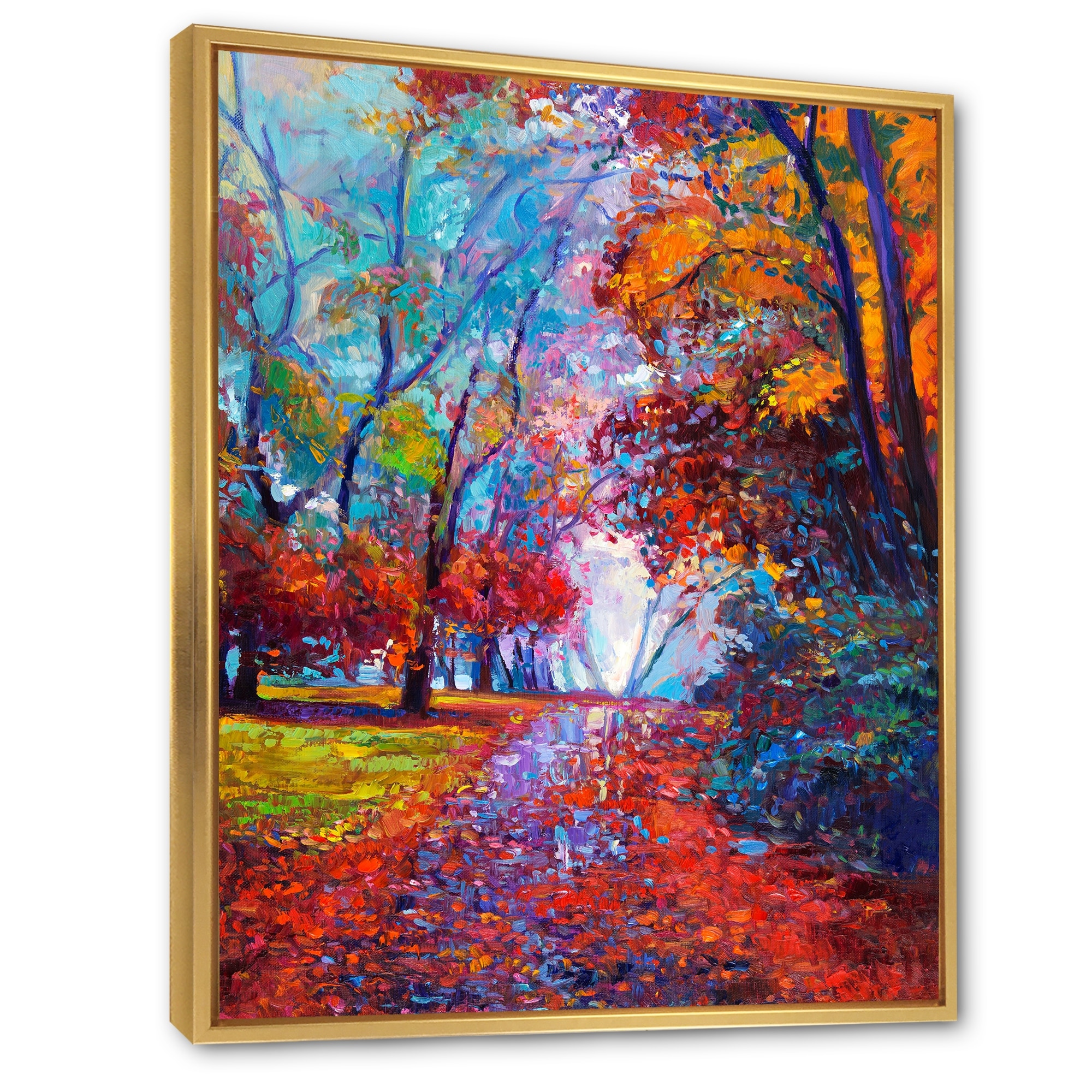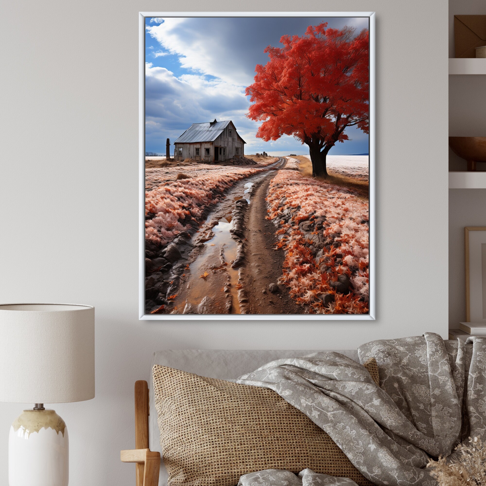 Designart "Little Road Through Red Autumn Landscape" Traditional Framed Canvas Wall Art Print