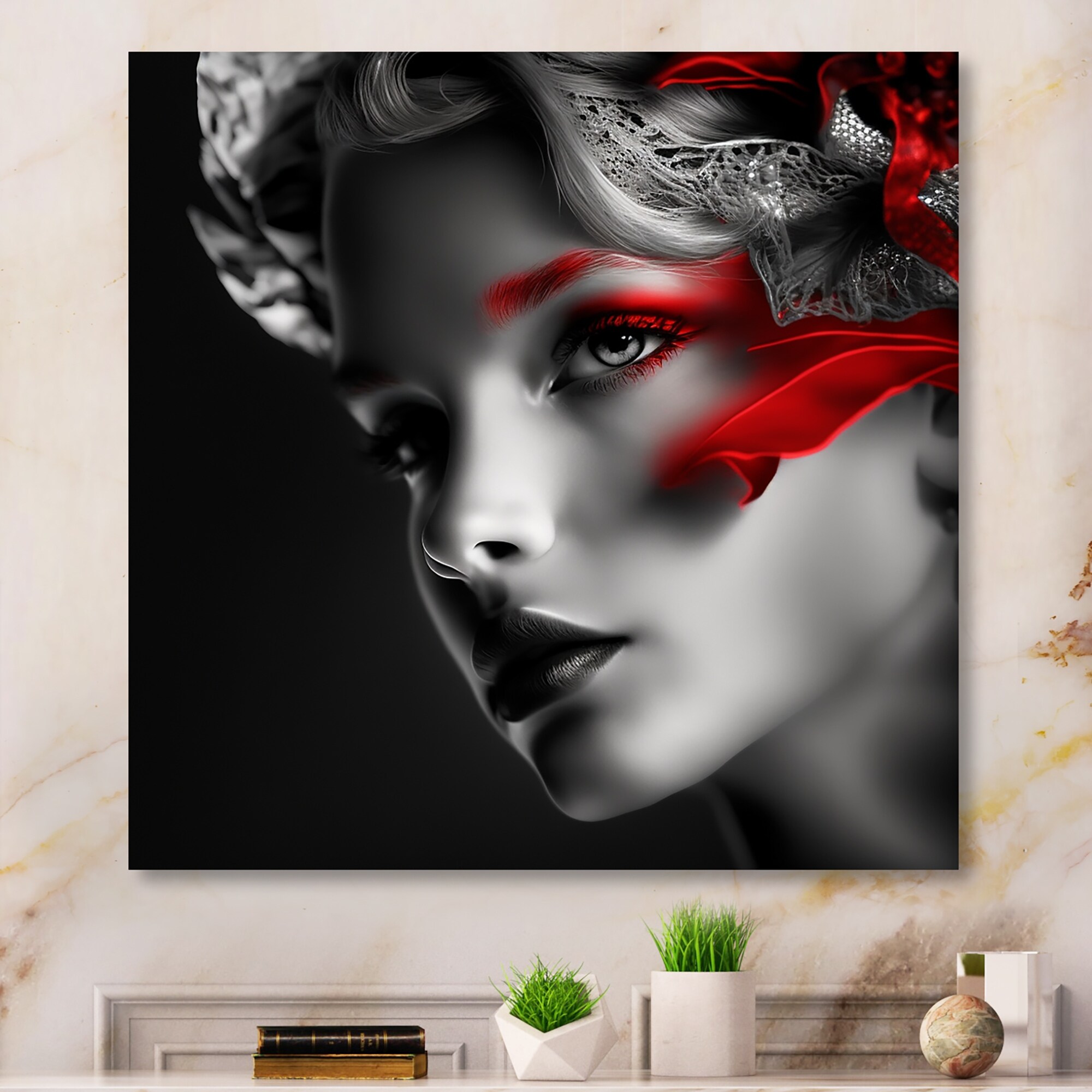 Designart 'Elegant Retro Allure in Black And Red I' Fashion Woman Metal Wall Art