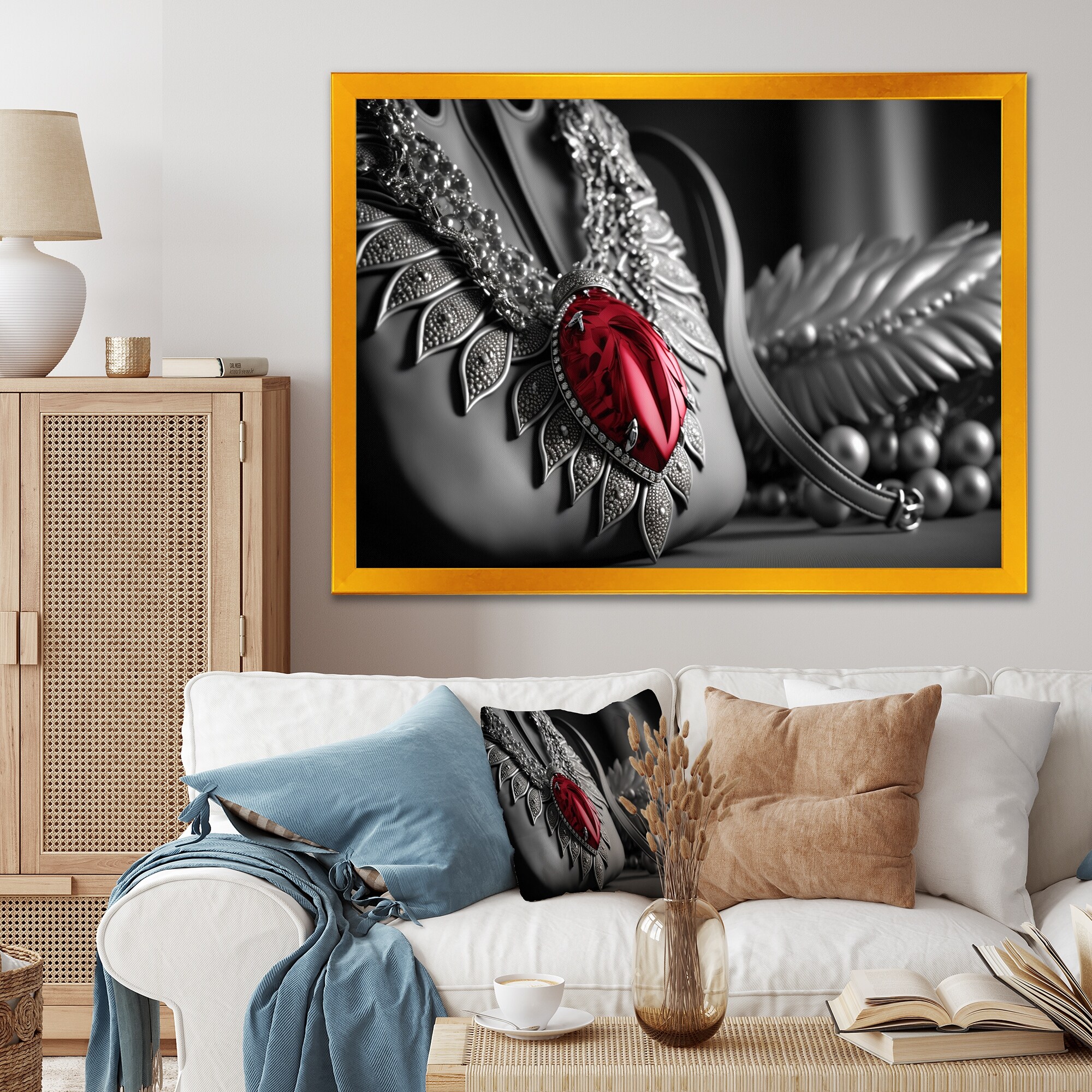 Designart "Vintage Glam Accessories in Red and Black II" Fashion Framed Art Print