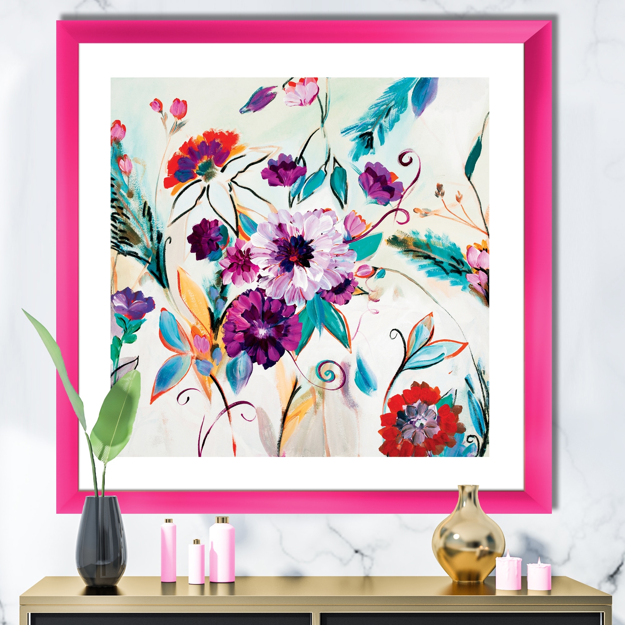Designart "Abstract Purple And Red Farmhouse Flowers" Traditional Premium Framed Art Print