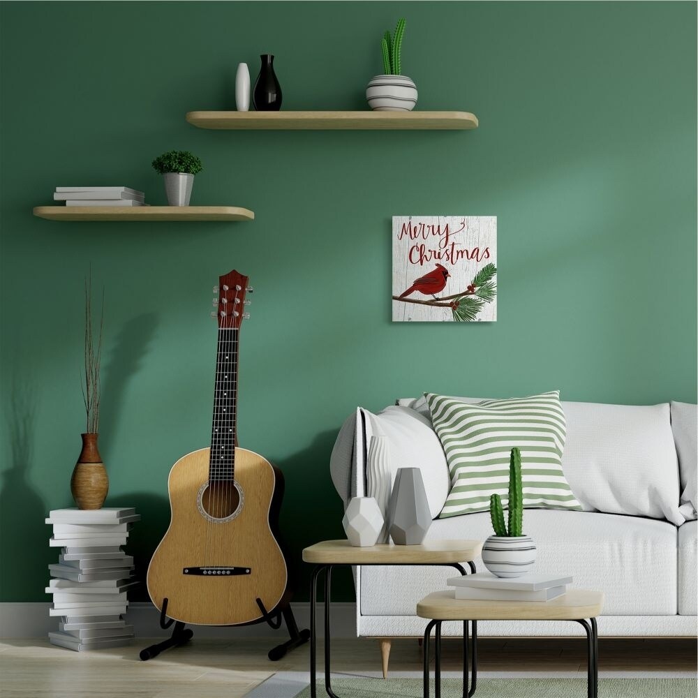 Stupell Merry Christmas Red Bird Wood Texture Holiday Word Design Canvas Wall Art, Proudly Made in USA