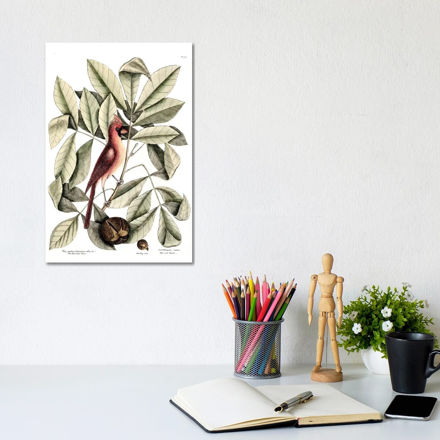 iCanvas "Red Bird (Northern Cardinal), Hickory Tree & Pig-Nut" by Mark Catesby Canvas Print