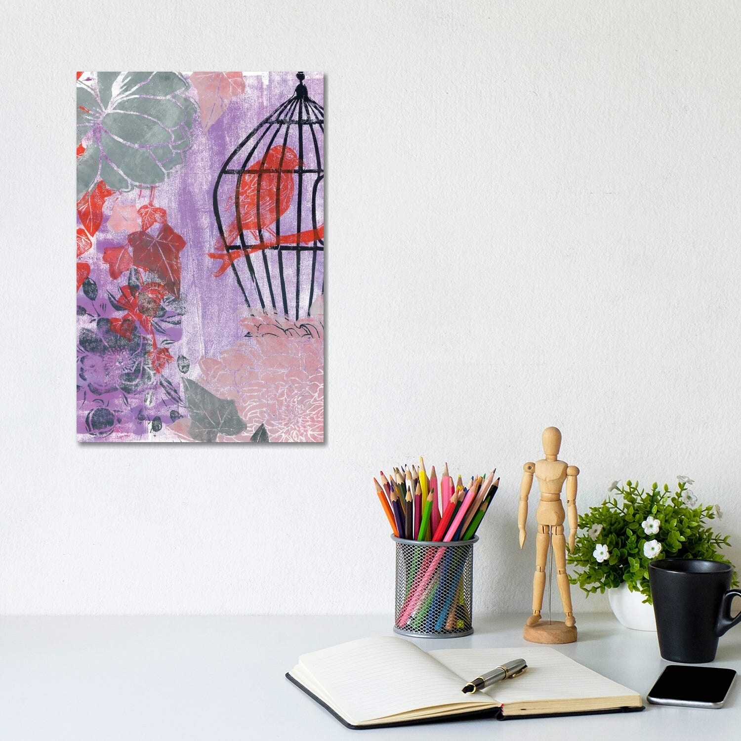 iCanvas "Stuck In the Moment With Red Bird: Linocut" by Andrea Kosar Canvas Print