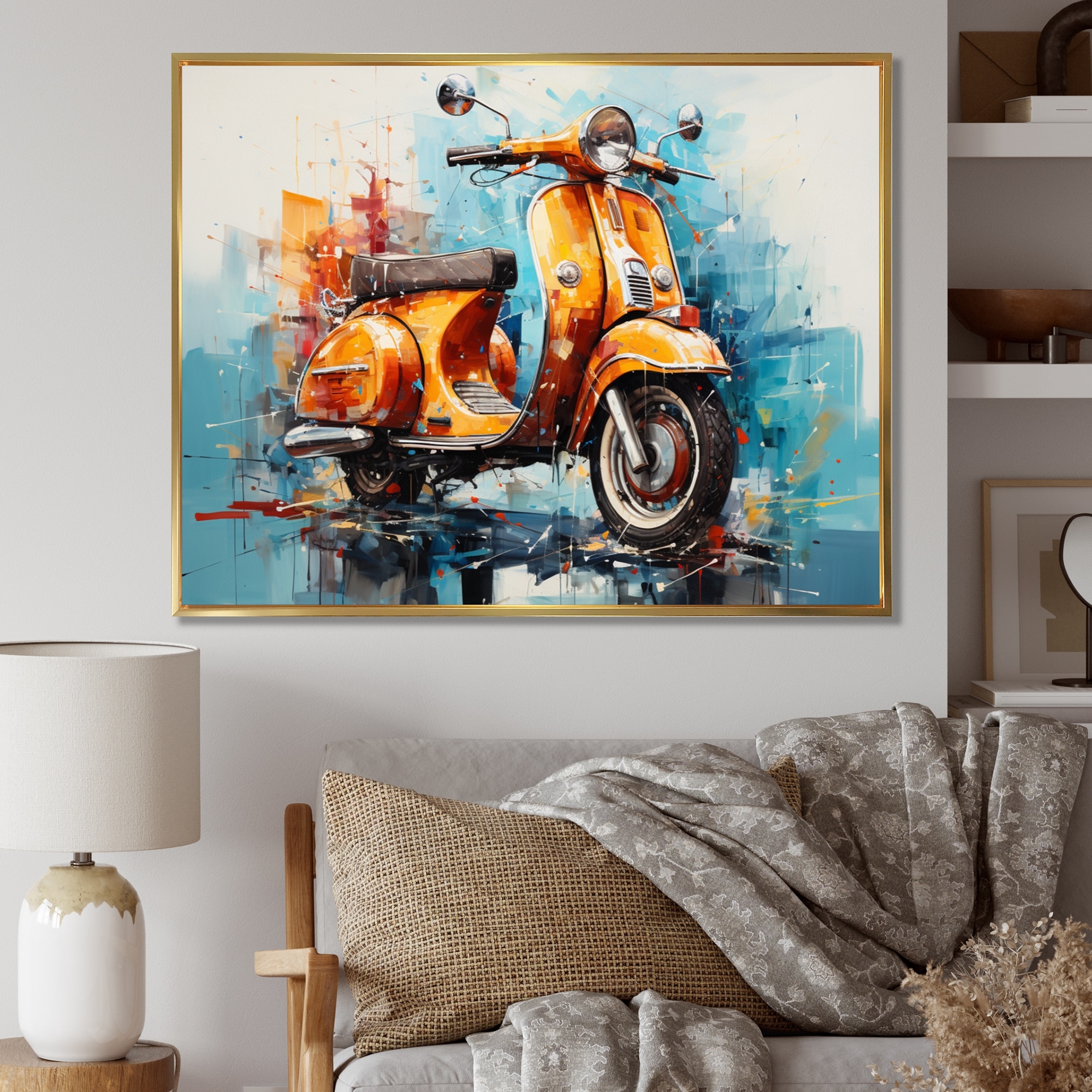 Designart "Scooter City Rides IV" Scooter Framed Canvas Print