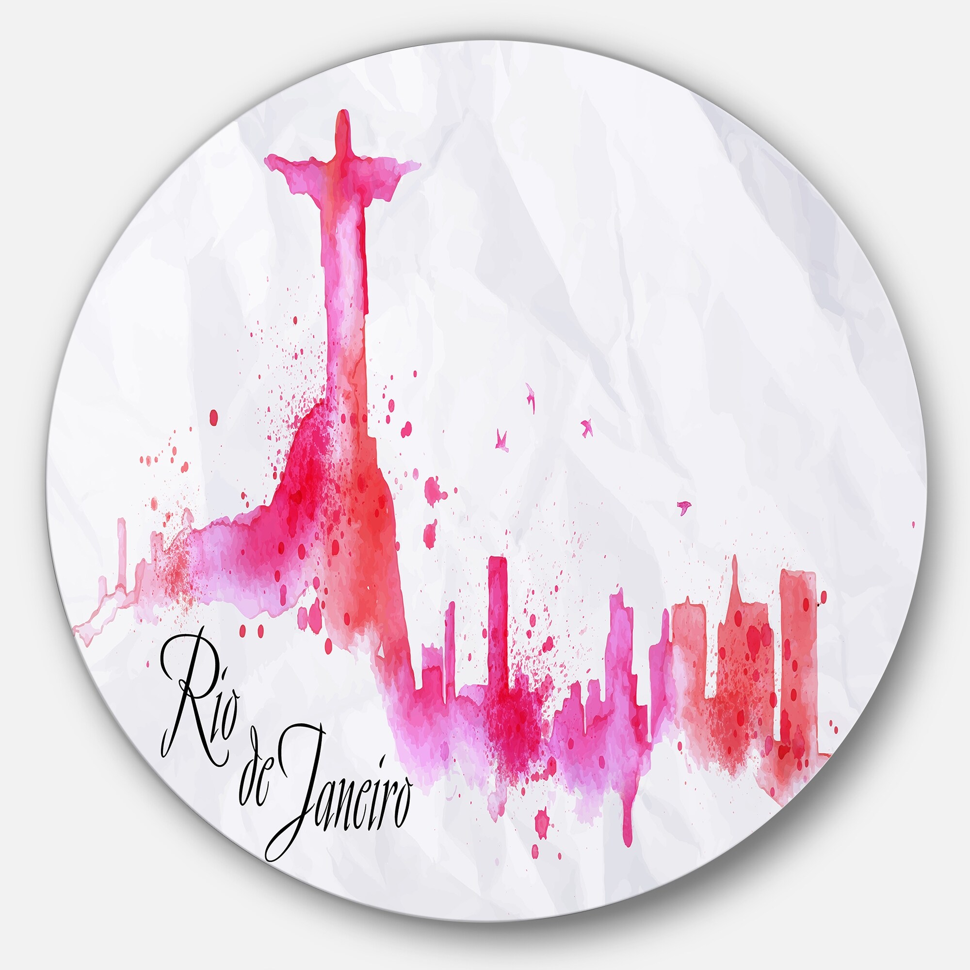 Designart 'Rio de Janeiro Red Silhouette' Cityscape Round Wall Art