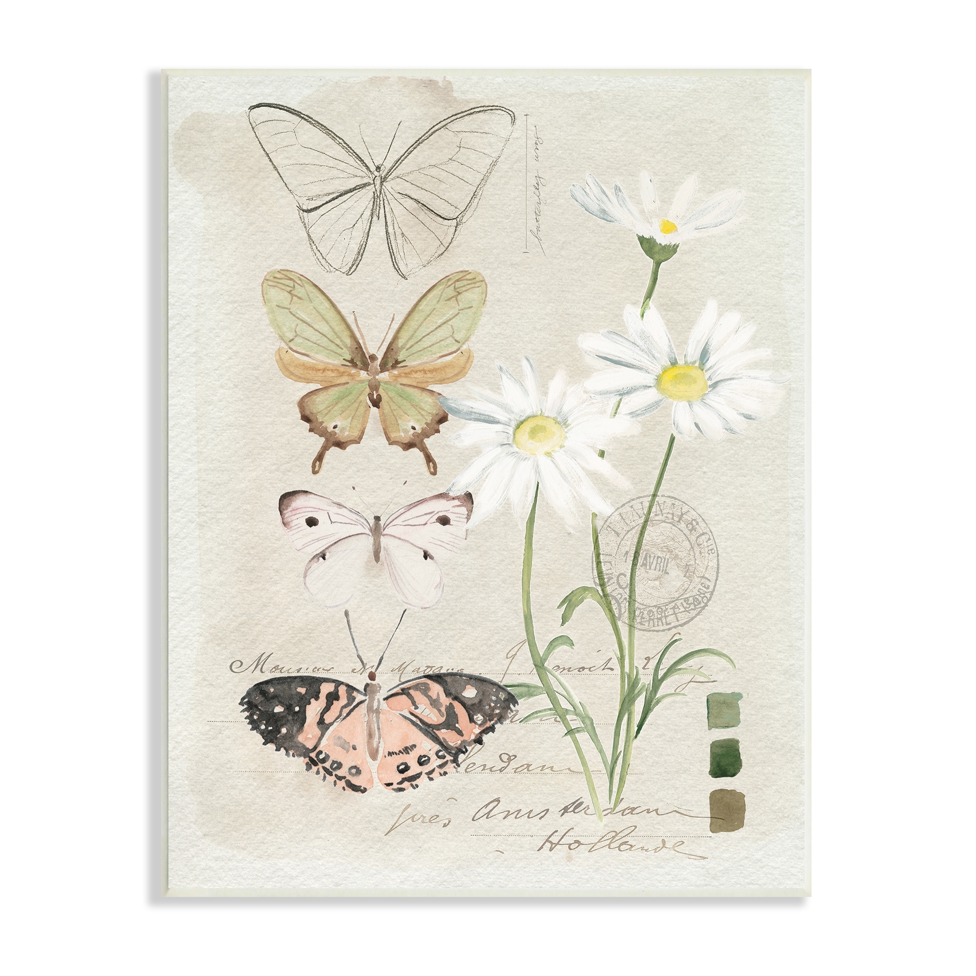 Stupell Industries Antique Daisy Field Study Earth Tone Color Scale Wood Wall Art