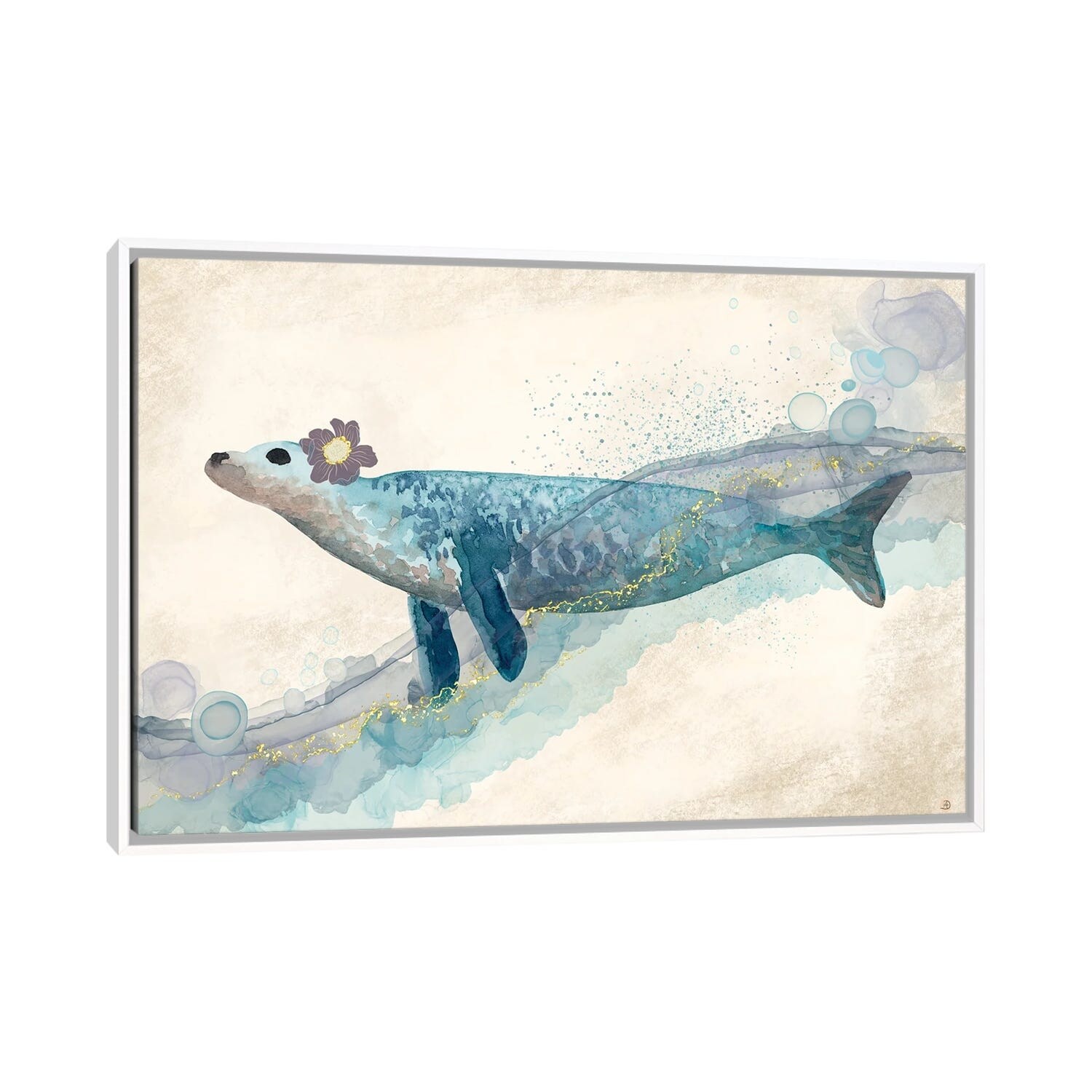 iCanvas "Seal In the Ocean Waves" by Andreea Dumez Framed Canvas Print