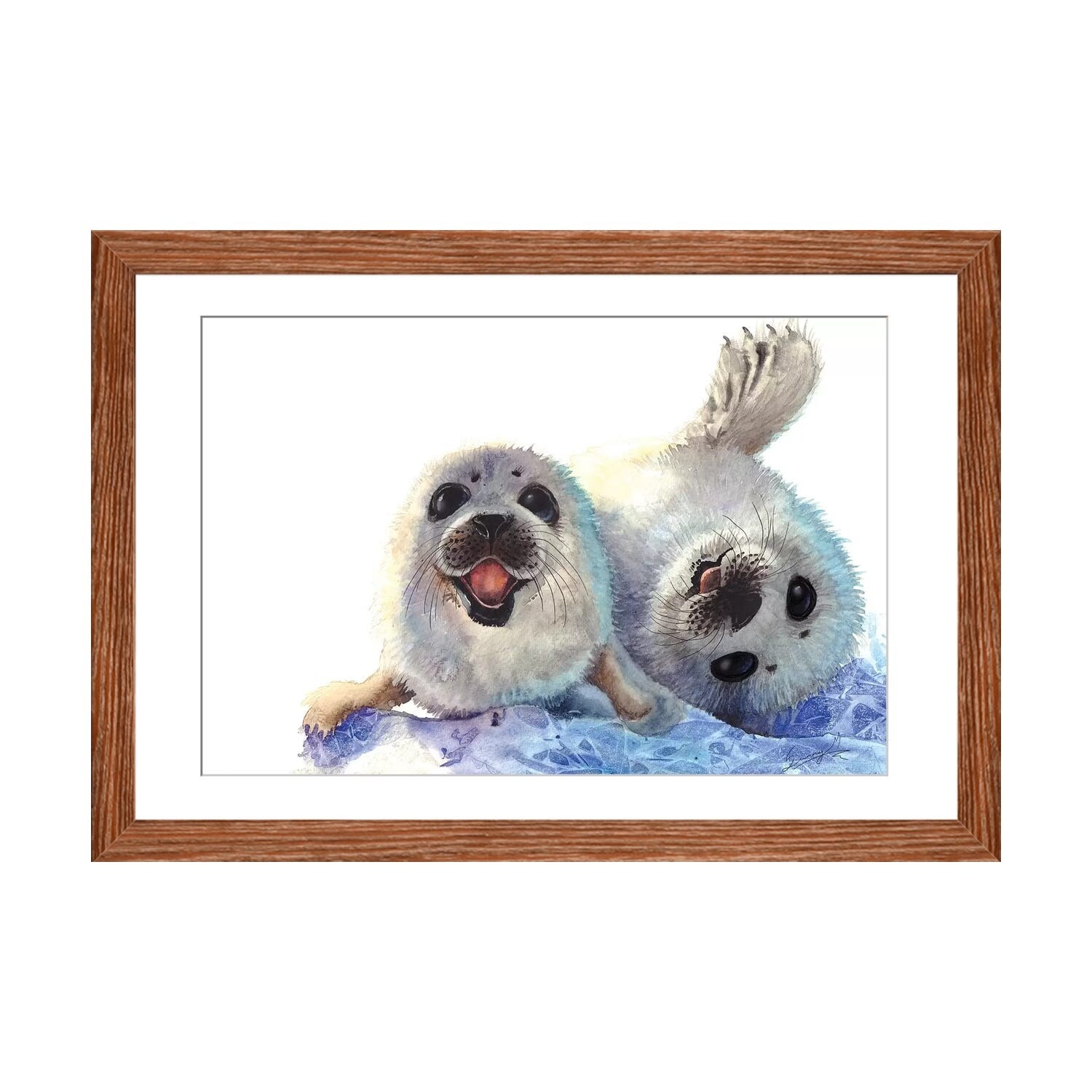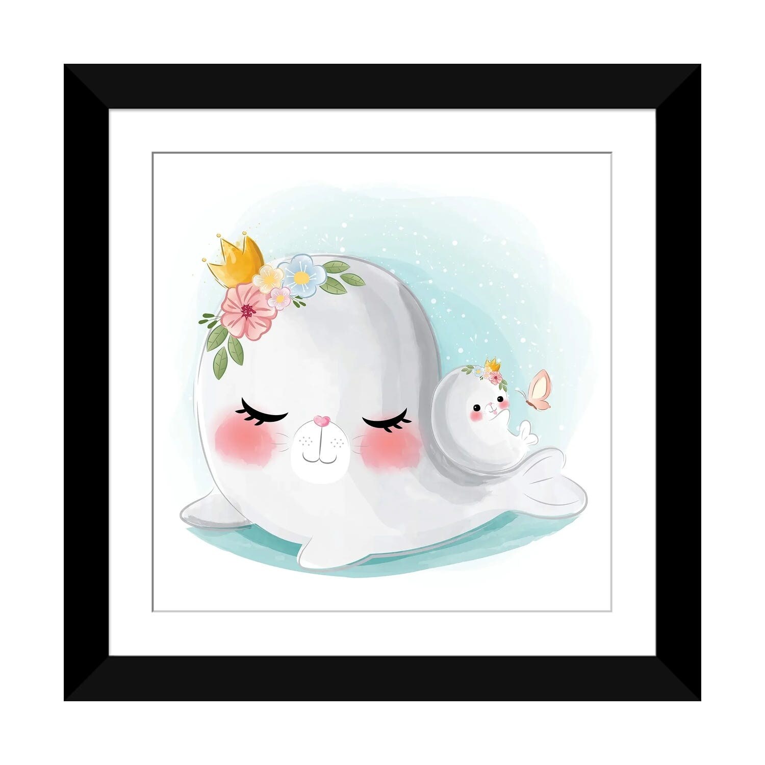 iCanvas "Mommy And Baby Seal" by Art Mirano Framed