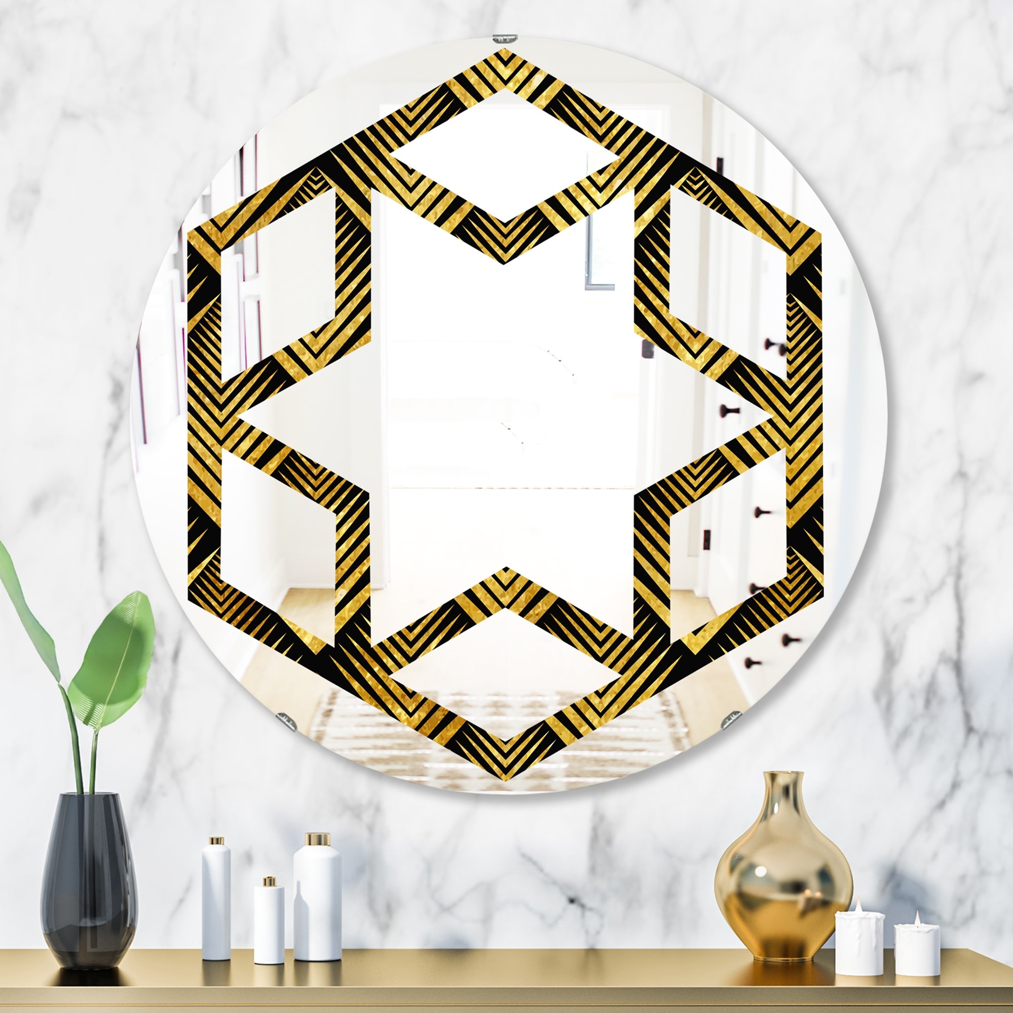 Designart 'Art Deco Seal pattern' Printed Modern Round or Oval Wall Mirror - Hexagon Star