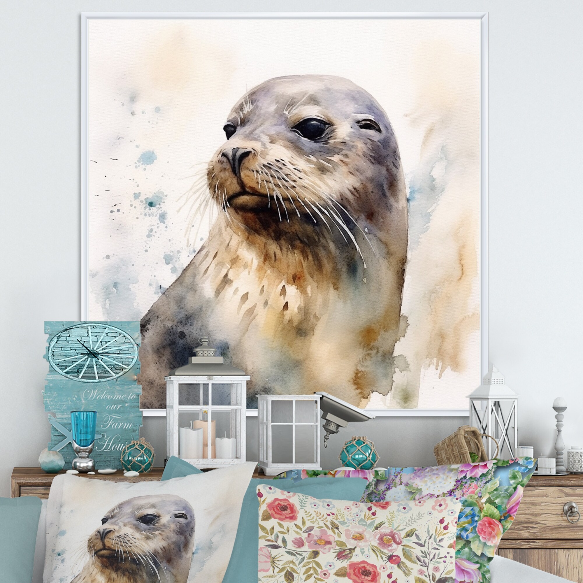 Designart "Curious Sea Lion I" Seal/Sea Lion Framed Canvas Prints