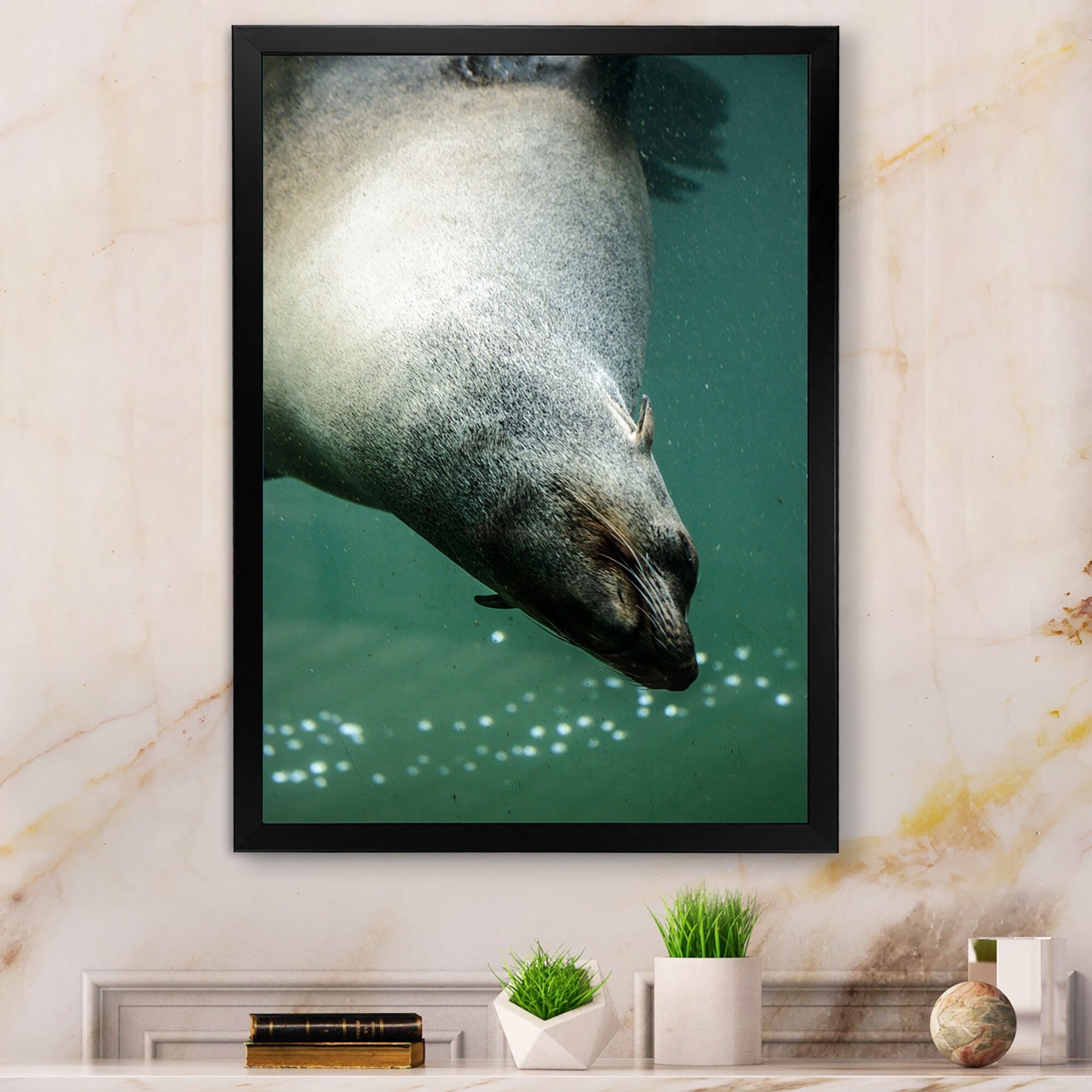 Designart "Curious Sea Lion II" Seal/Sea Lion Framed Canvas Art Print