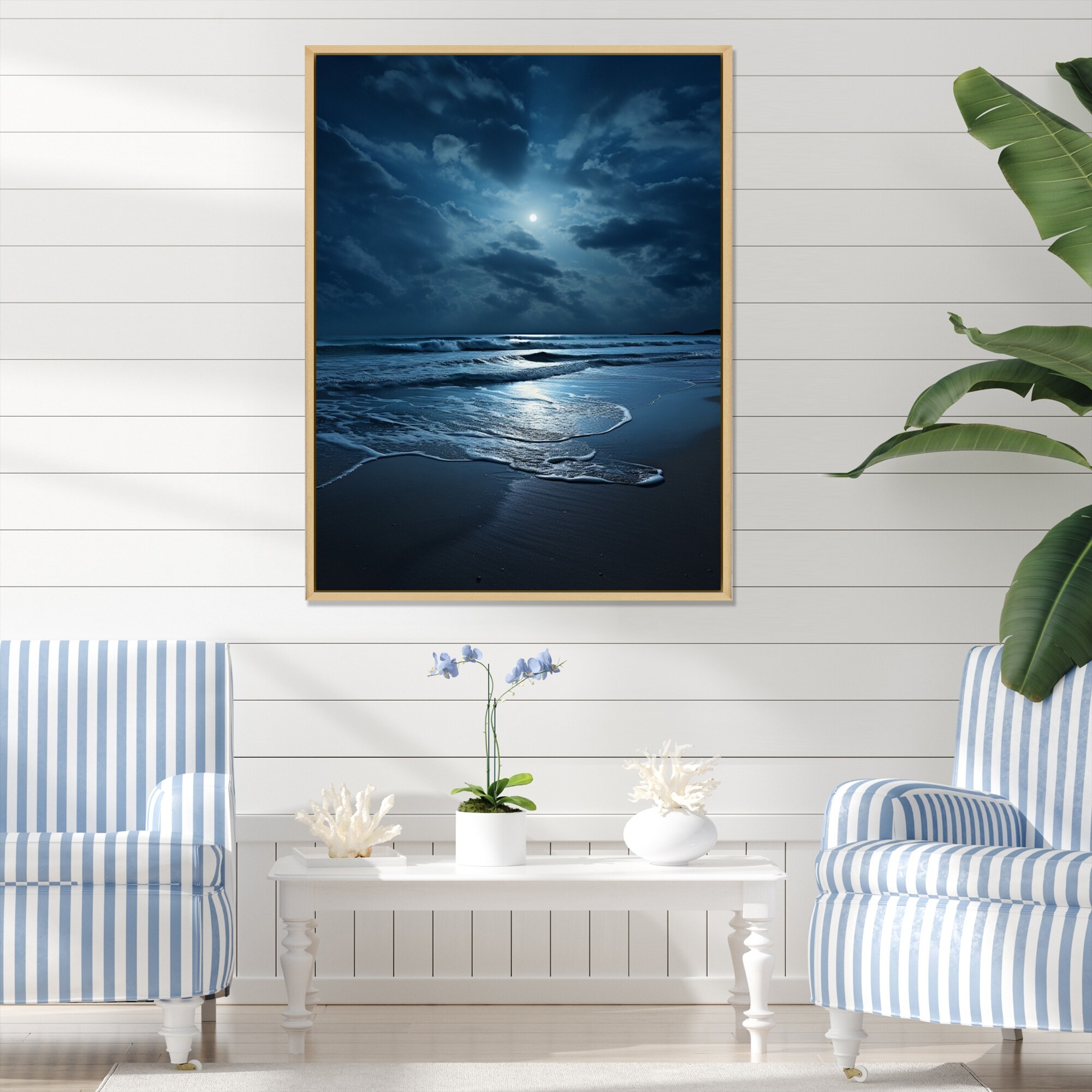 Designart "Beach Photo Serene Moonlight I" Beach Framed Canvas Art Print