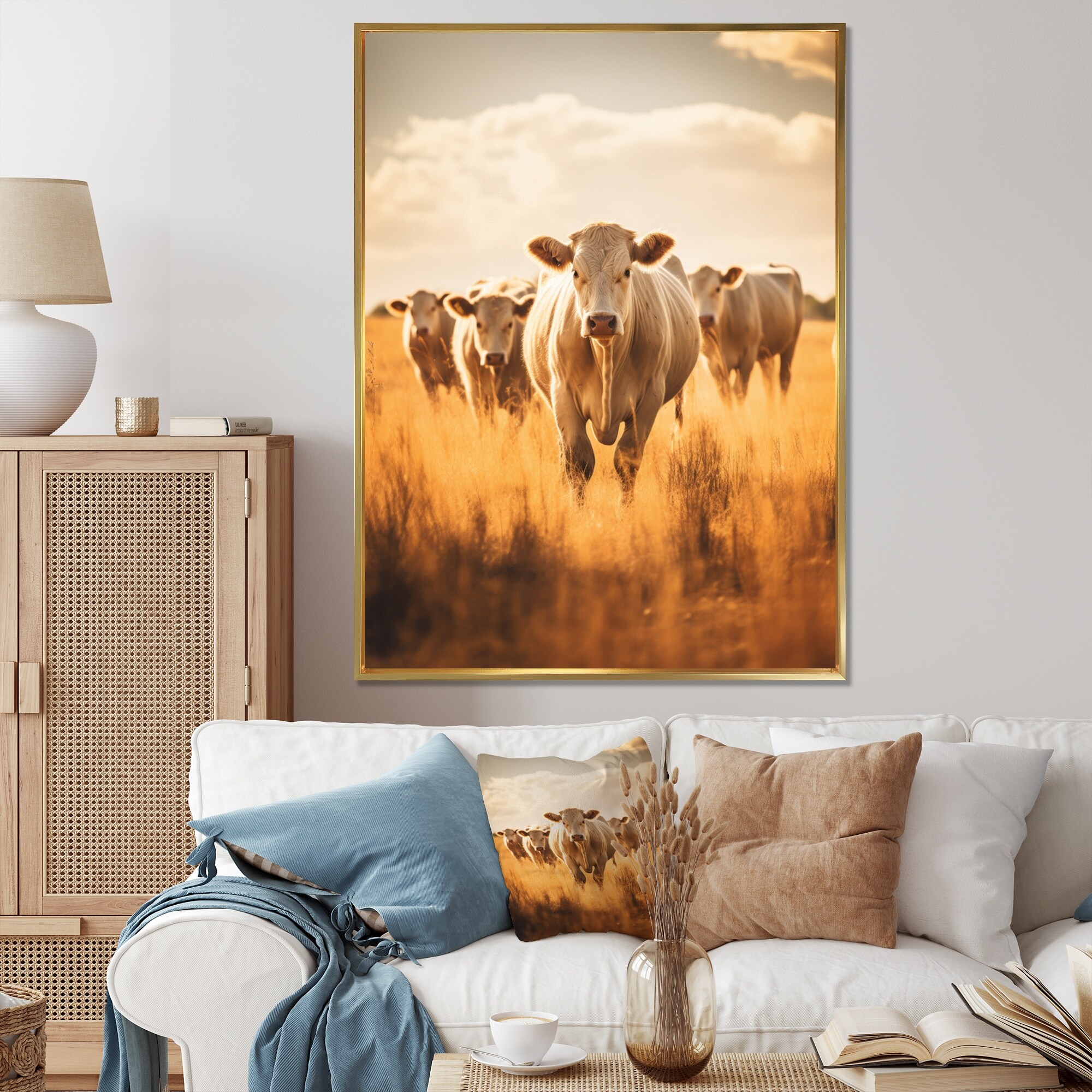 Designart "Cattle Pastoral Serenity II" Cattle Framed Wall Decor