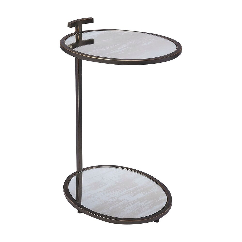 Offex Modern Metal and Mirror Oval Side Table - Black