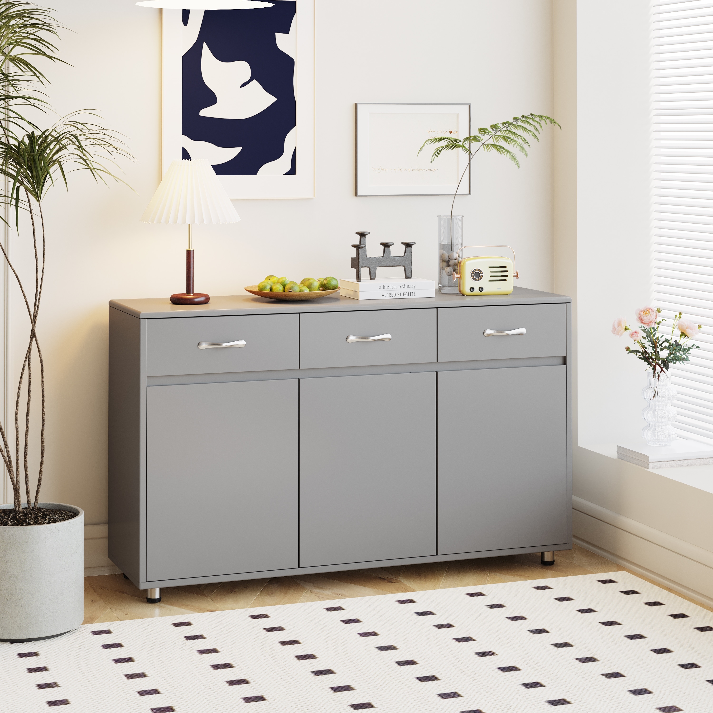 Aoolive Three Doors Side Table with Drawers for Living Room