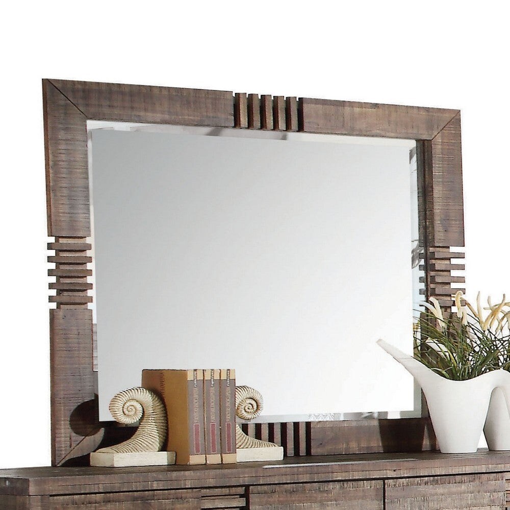 Rectangular Wooden Frame Mirror with Slat Pattern, Brown and Silver - 39 H x 2 W x 44 L Inches