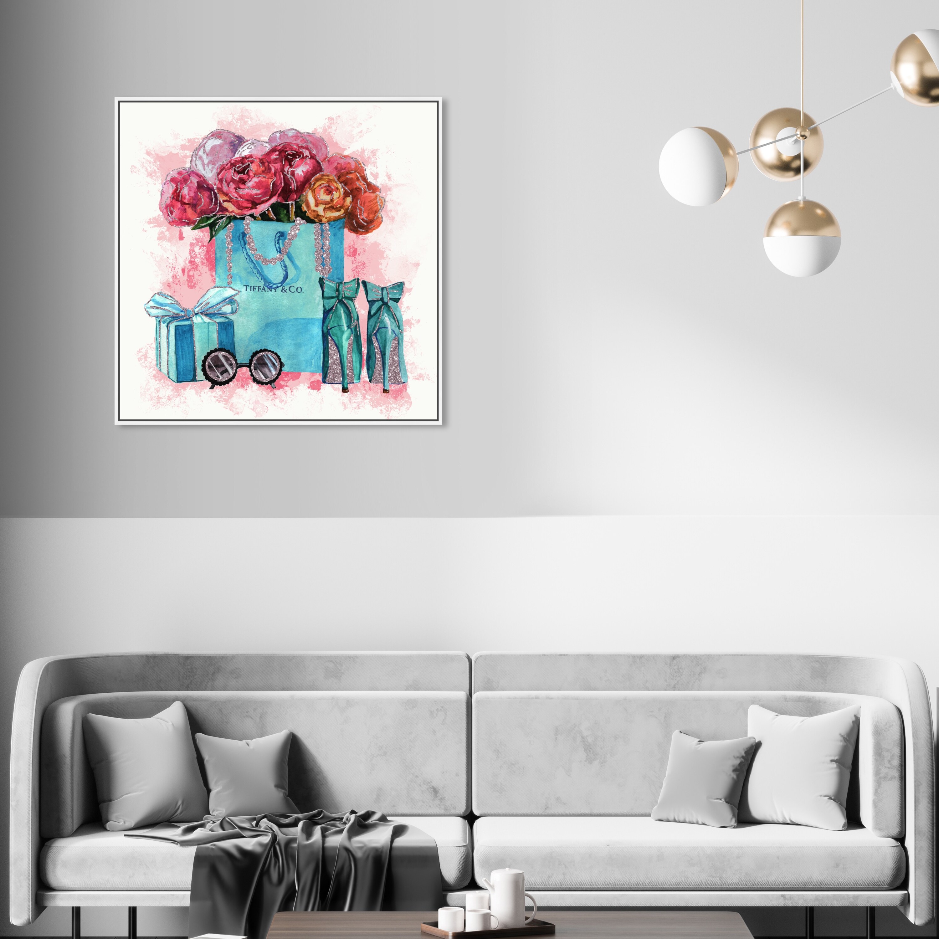 Oliver Gal 'Sparkle Blue Jewelry' Fashion and Glam Wall Art Framed Canvas Print Essentials - Blue, Pink