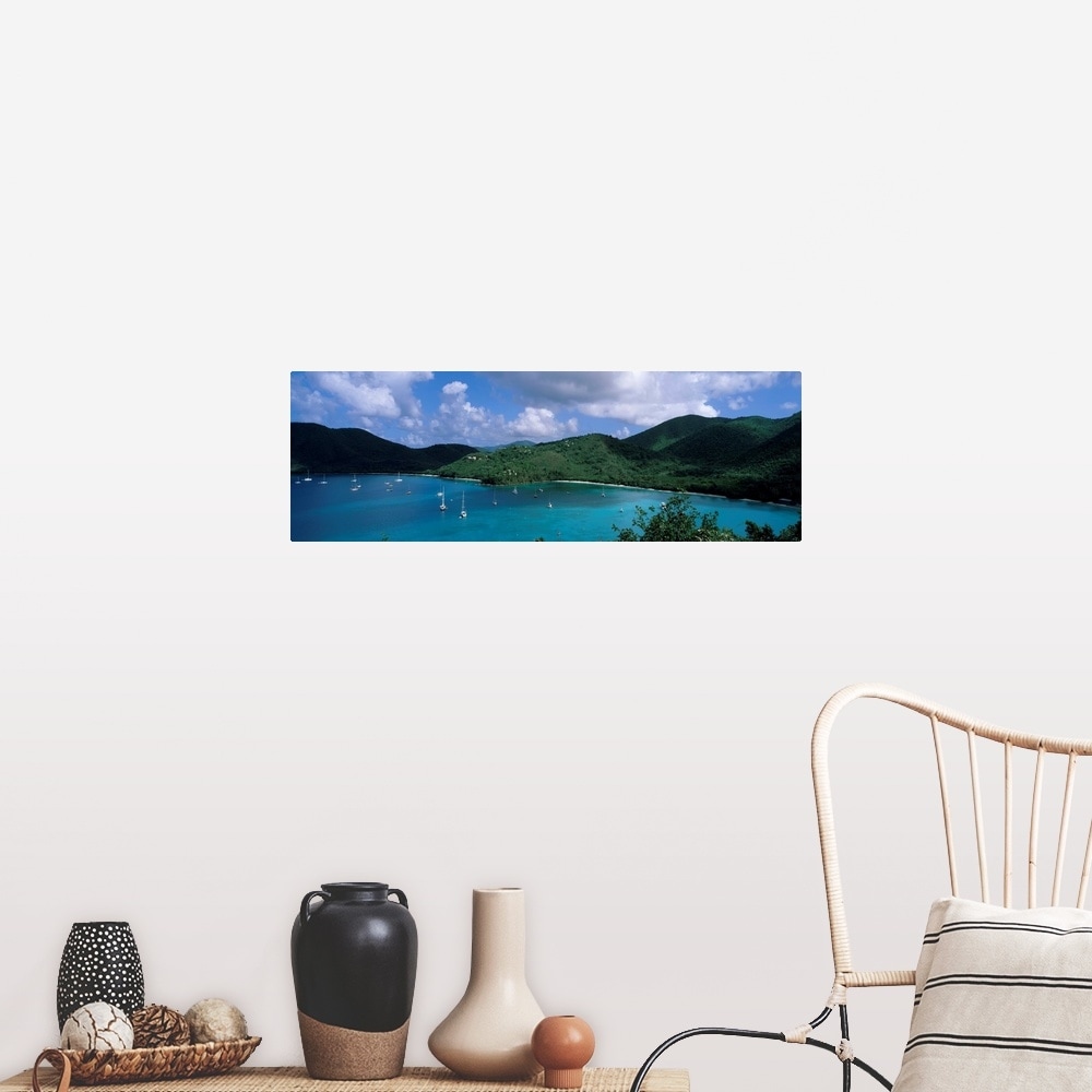 "US Virgin Islands, St. John, Caneel Bay, High angle view of boats in the sea" Poster Print