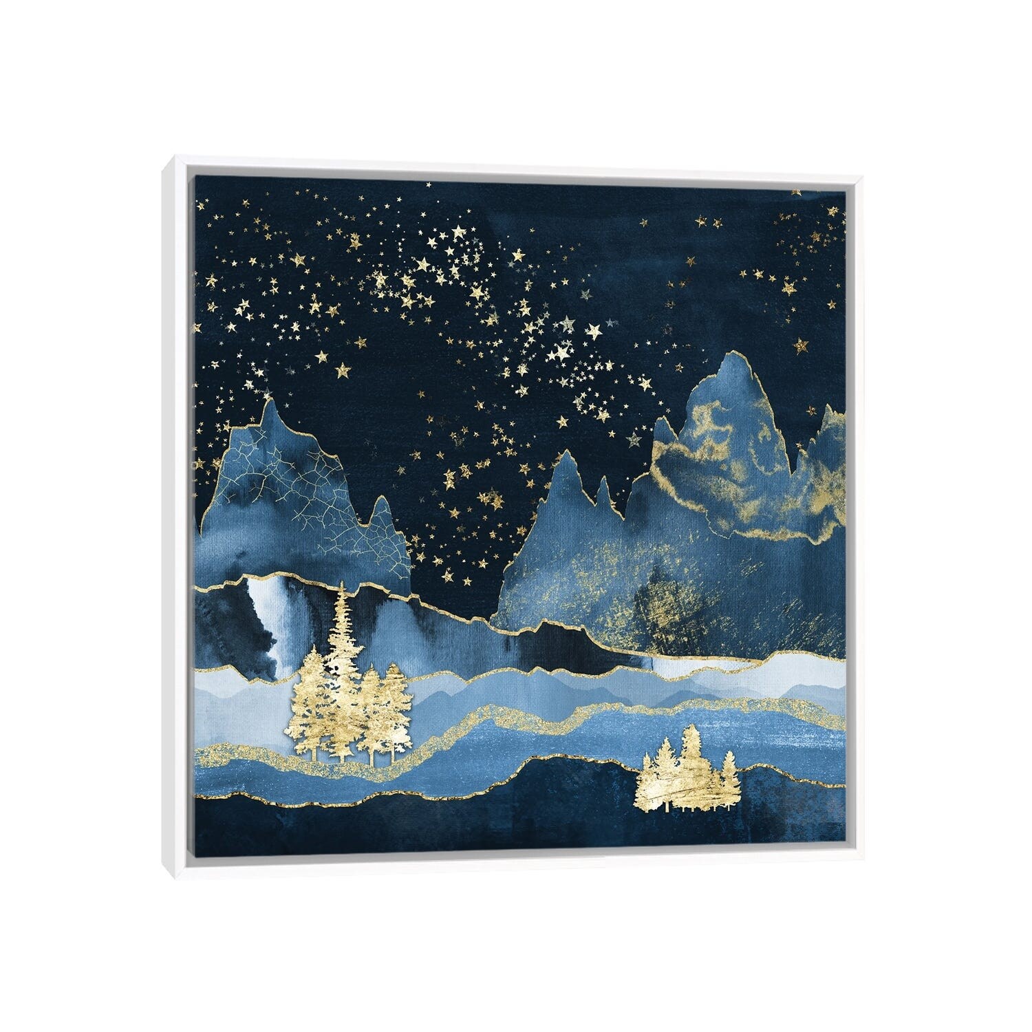 iCanvas "Mountain Starry Night Navy Blue and Gold Abstract Modern Geometric Mountains" by Nature Magick Framed Canvas Print