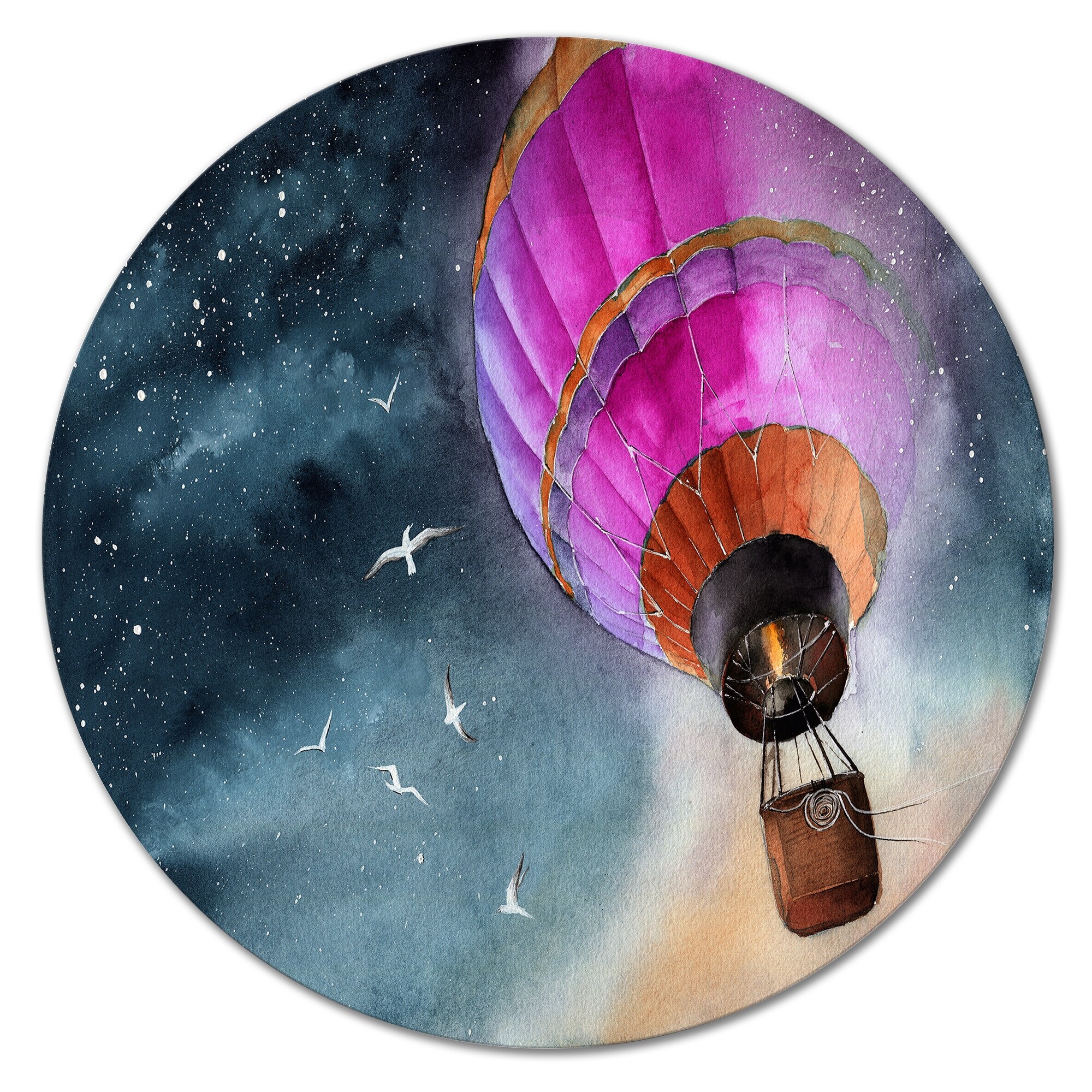 Designart 'Pink Air Balloon in Starry Night' Country Metal Circle Wall Art