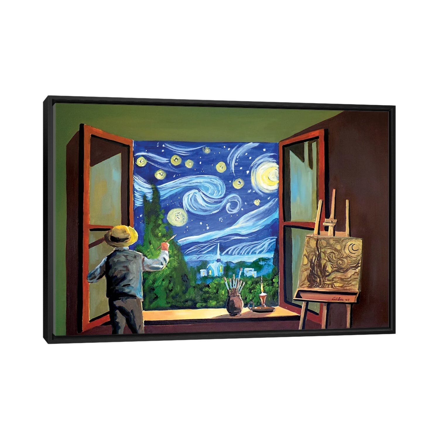 iCanvas "Van Gogh Paints the Starry Night" by Gordon Bruce Framed Canvas Print